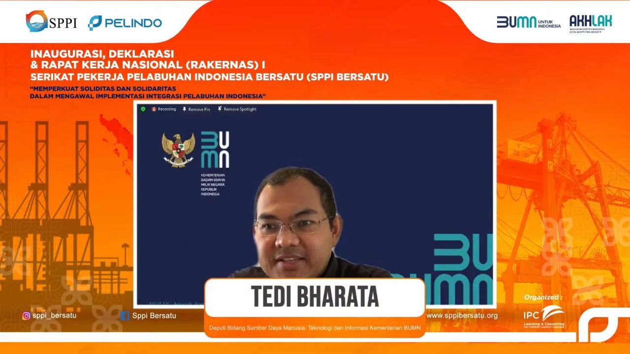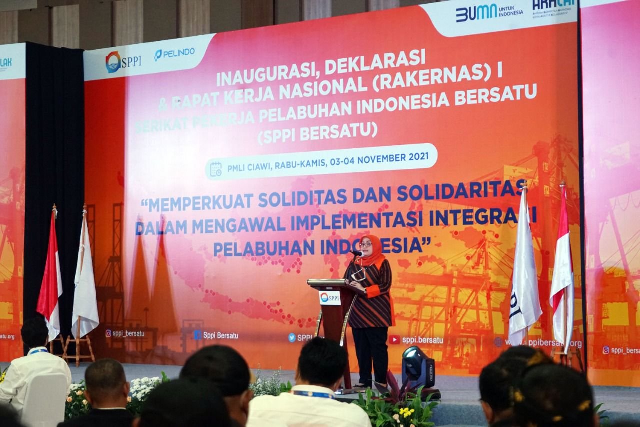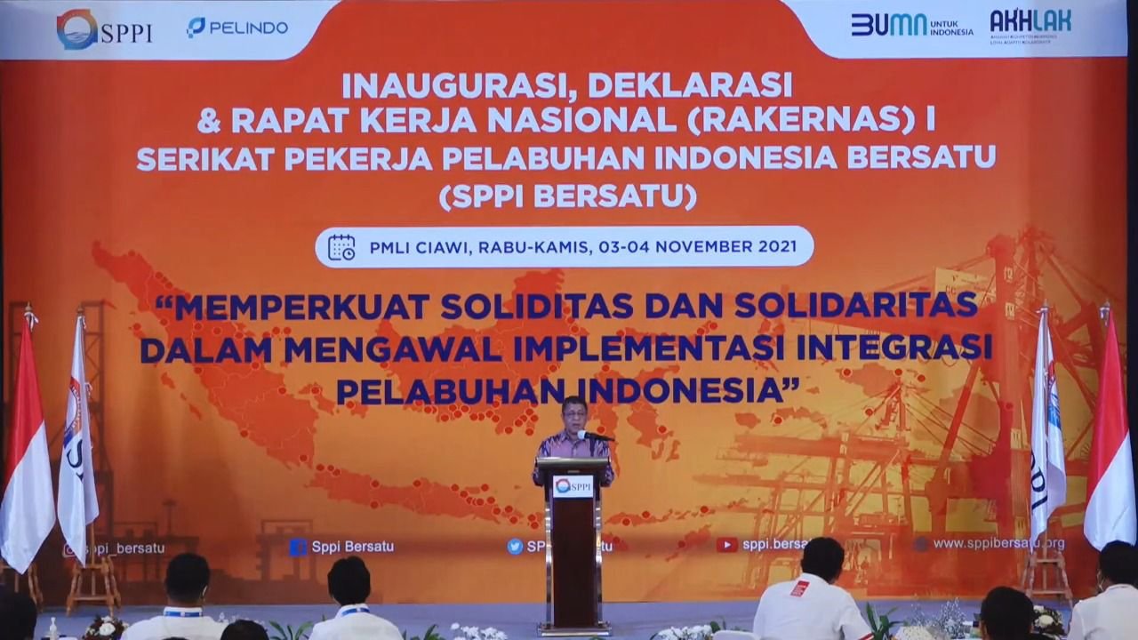 “Inaugurasi, Deklarasi dan Rakernas I ini, sebagai wujud komitmen bersama seluruh pekerja pelabuhan Indonesia. Untuk turut serta merealisasikan cita-cita Pelindo menjadi pintu gerbang utama jaringan logistik global di Indonesia,”demikian disampaikan Ketua Umum SPPI Bersatu Dodi Nurdiana dalam sambutannya saat Rakernas I di Bogor, Rabu (3/11/2021).