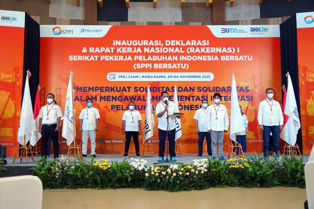 Menindaklanjuti penggabungan Pelindo yang sudah resmi dilakukan, tepat hari Rabu 3 November 2021, SPPI Bersatu secara resmi melakukan Inaugurasi, Deklarasi dan Rapat Kerja Nasional I (Rakernas I) SPPI Bersatu sebagai wujud komitmen seluruh pekerja pelabuhan Indonesia untuk bersatu merealisasikan visi Pelindo menjadi pemimpin ekosistem maritim terintegrasi dan berkelas dunia.