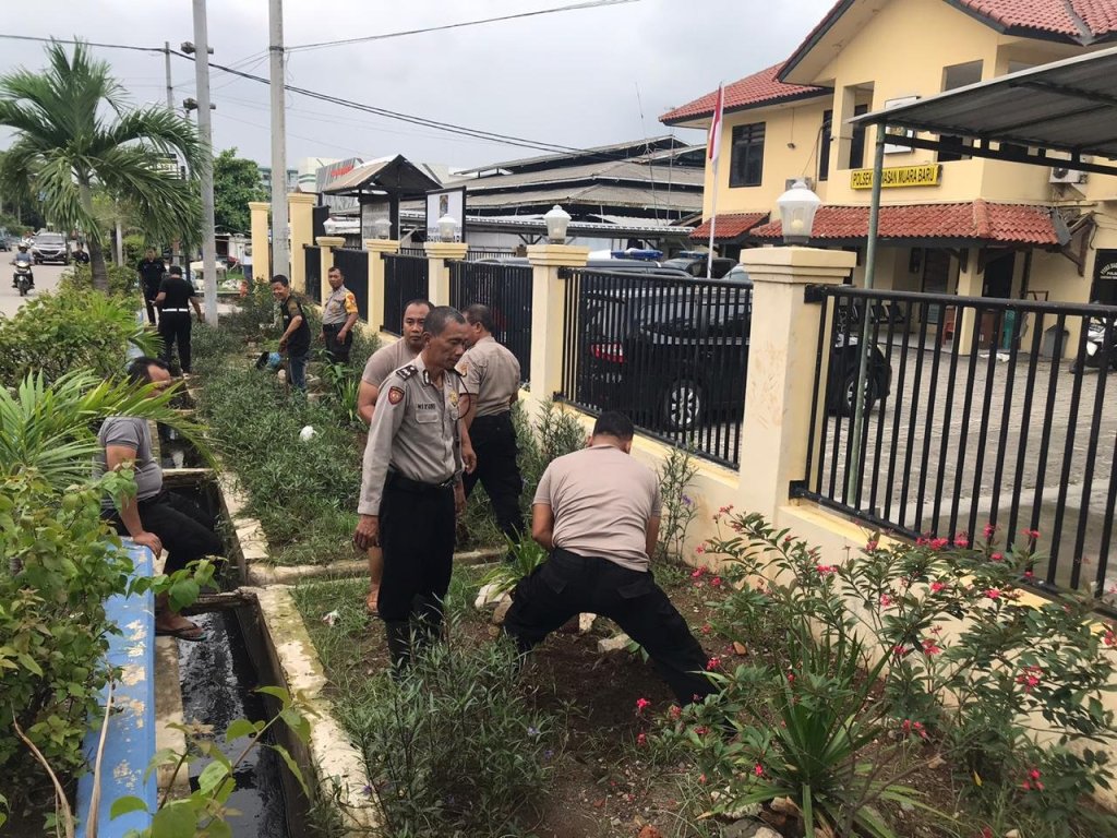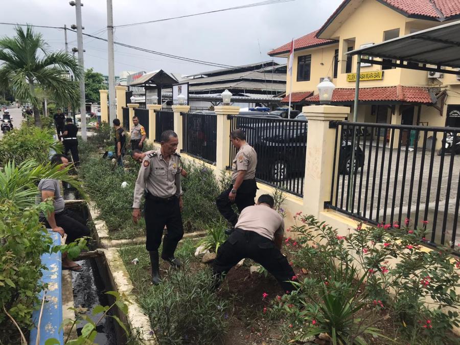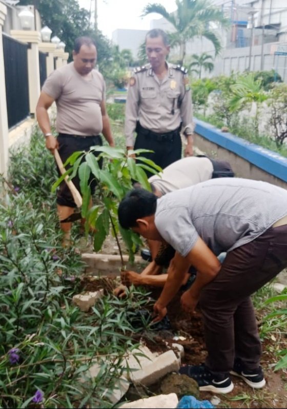 Polres Pelabuhan Tanjung Priok melalui Polsek Kawasan Muara Baru – Jakarta Utara. Dalam rangka mensukseskan Program Polri dibidang lingkungan yaitu Program Polri Peduli Penghijauan.Kapolsek Kawasan Muara Baru AKP. Slamet Riyanto, bersama Kanit Lantas Iptu Ayi Supriyadi, Kanit Reskrim Iptu Yudi Hermawan, Kanit Sabhara Iptu Dwi Saksana dan Kanit Intel Ipda Aji Mulyanto serta anggota Polsek Kawasan Muara Baru melaksanakan penanaman bibit pohon di depan pagar halaman Polsek Kawasan Muara Baru, Senin pagi (06/01/2020).