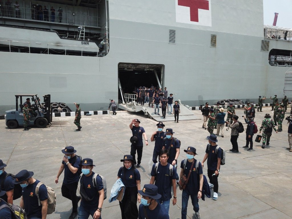 Mereka tiba pukul 12.00 di Dermaga Kolinlamil, dengan KRI Semarang 594 di Tanjung Priok, Jakarta Utara, Sabtu (14/3/2020)