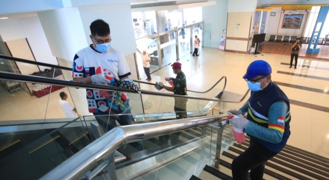 Meningkatnya kasus penyebaran virus corona atau Covid-19 di Indonesia menjadi perhatian khusus sejumlah pihak dan instansi tak terkecuali PT Pelabuhan Indonesia III (Persero) atau Pelindo III. Guna mengantisipasi penyebaran virus tersebut, seluruh jajaran pegawai beserta unsur kemaritiman yang tersebar di berbagai regional menggelar kegiatan bersih-bersih massal di Terminal Penumpang Tanjung Perak Surabaya,Jumat (13/3/2020)Kegiatan ini dengan menggunakan peralatan lengkap seperti masker, sarung tangan dan disinfektan para petugas kesehatan dari Kantor Kesehatan Pelabuhan,TNI-POLRI hingga sejumlah pegawai Pelindo III menyisir sejumlah lokasi terminal penumpang salah satunya Gapura Surya Nusantara yang memiliki resiko penularan virus Corona atau Covid-19. Tak hanya di Surabaya gerakan ini juga serempak dilakukan di teminal penumpang di masing- masing pelabuhan hingga seluruh kantor operasional Pelindo III di empat regional yaitu Jawa Timur, Jawa Tengah, Kalimantan dan Bali-Nusra.