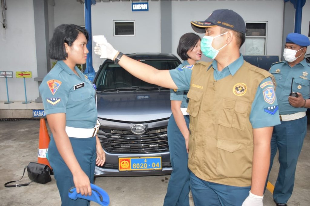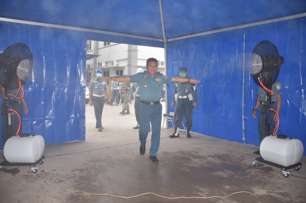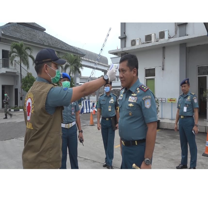 Panglima Kolinlamil Laksda TNI Ahmadi Heri Purwono, S.E juga saat memasuki kantor dengan kendaraan dinasnya melalui protap kesehatan yang telah ditetapkan Kementerian kesehatan. Untuk diperiksa suhunya dengan alat thermometer infrared dan dilakukan penyemprotan disinfektan.