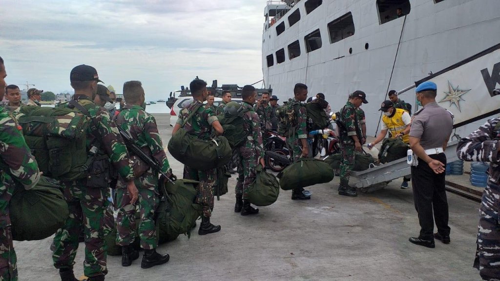 Satya Wira Jala Dharma. Perintah berlayar yang diterima KRI Tanjung Kambani 971 untuk mendukung pemulangan Batalion Infanteri 734 Satria Nusa Samudera langsung diaksi dengan melaksanakan embarkasi personel dan materialnya di Dermaga Pelabuhan Ahmad Yani, Ternate, Maluku Utara, Minggu (22/3/2020).