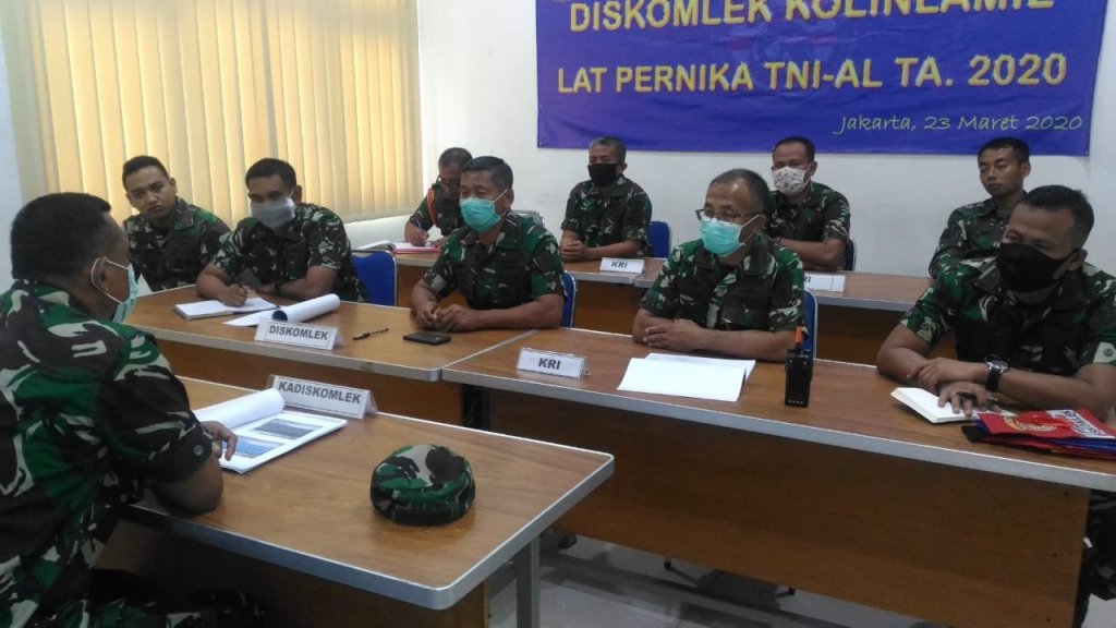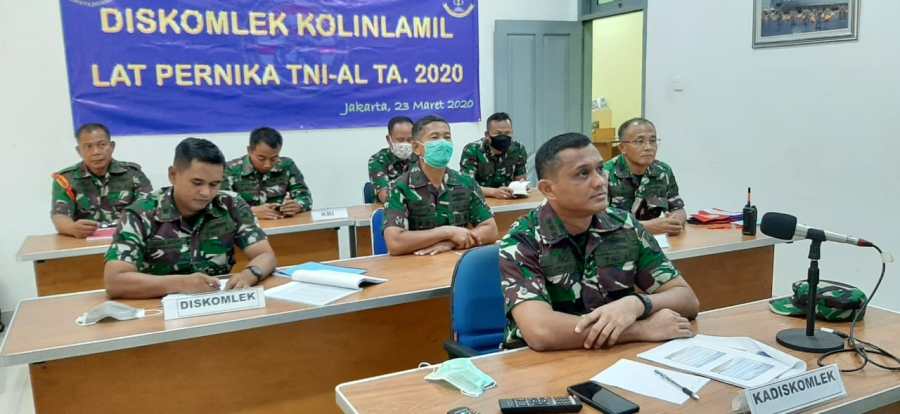 Mimbar Maritim – JakartaLatihan Pernika yang dibuka oleh Kadiskomlekal Laksma TNI Atok Dushanto, M.Soc.Sc, dilaksanakan secara langsung dari Mabes TNI AL Cilangkap, melalui sarana Video Conference (Vicon). Hal ini selain untuk sarana komunikasi, juga sebagai pembatasan sosial dan pergerakan ditengah situasi waspada virus corona yang masih merebak.