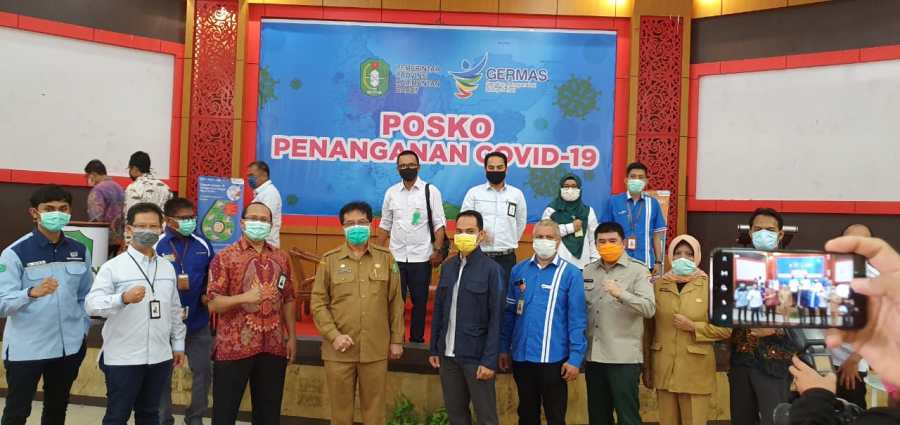Dalam penyerahan bantuan APD dari gabungan BUMN di Kalbar tersebut langsung diterima oleh Sekda Kalbar sebagai Ketua Harian Gugus Tugas Penanggulangan Covid-19 Provinsi Kalbar, AL Leysandri didampingi Kepala Dinas Kesehatan Kalimantan Barat Harrison dan Kepala BNNP Kalbar, Lumano.(Ody-01).