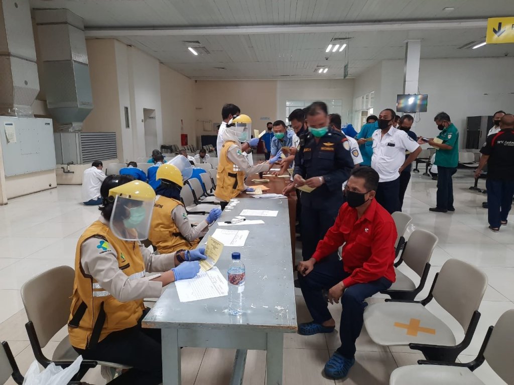 Terindikasi positip tertular Covid-19 telah ditemukan lagi di Kapal Pelni di Pelabuhan Tanjung Priok. Kepala Kantor Kesehatan Pelabuhan Tanjung Priok dr Jefri Hasurungan Sitorus bersama Koordinator Tim Posko Capt Hermanta Kepala Kantor Kesyahbadaran Utama Tanjung, melakukan pengawasan langsung ke Terminal Pelni Tanjung Priok,Senin (20/4/2020).