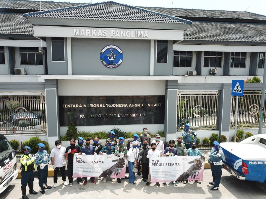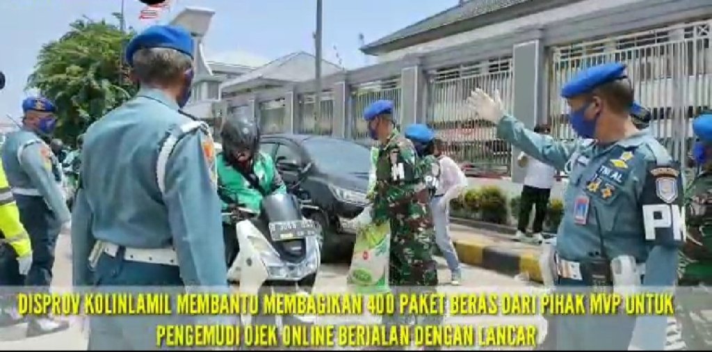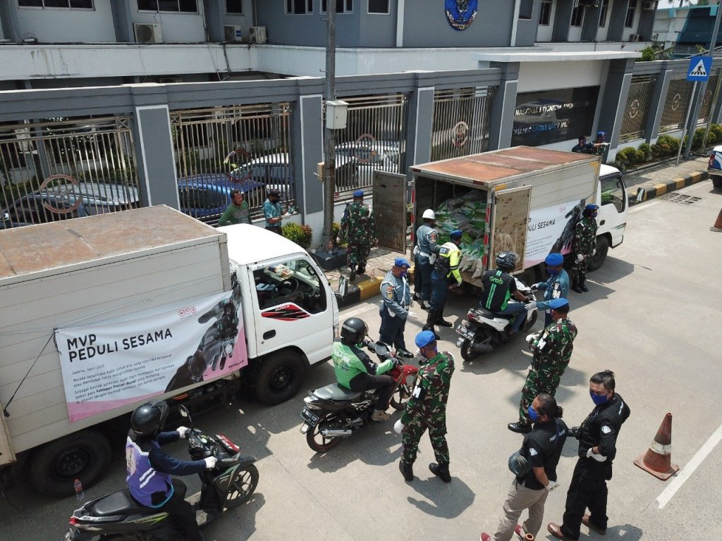 Satya Wira Jala Dharma. Multivision Plus peduli sesama diwakili oleh HRD Siti Imas Masitoh bekerjasama dengan Dinas Provoos Komando Lintas Laut Militer (Kolinlamil) membagikan paket beras kepada warga terdampak pandemi Covid-19 di wilayah Tanjung Priok – Jakarta Utara. Kali ini masyarakat yang menjadi sasaran pembagian tersebut para pengemudi ojek online disekitar Pelabuhan Tanjung Priok, Senin (20/4/2020).