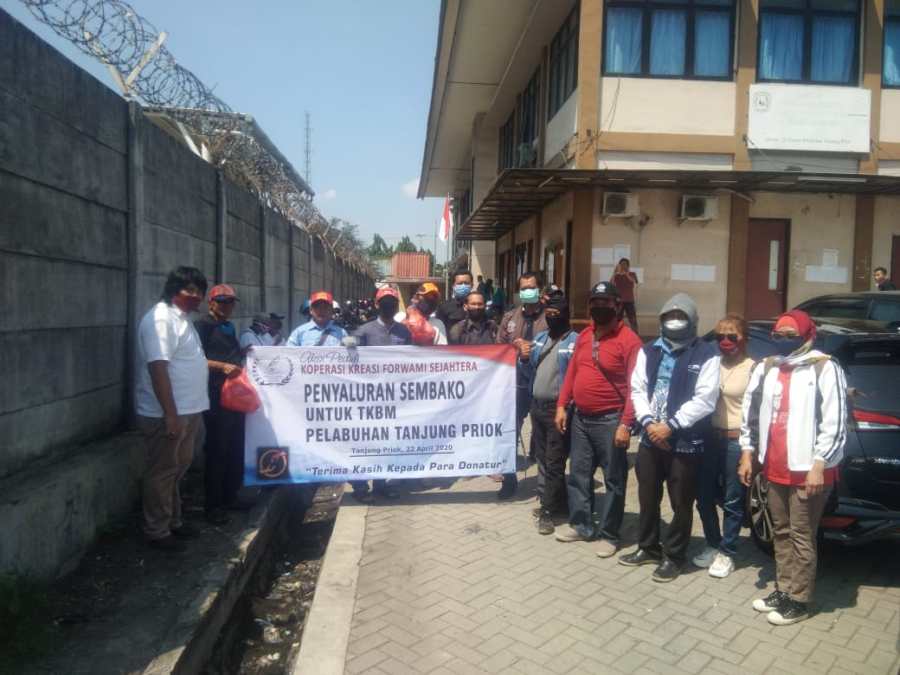 Dampak dari wabah Covid-19 secara global maupun di Indonesia sangat dirasakan masyarakat terutama dalam kebutuhan sehari – hari. Forum Wartawan Maritim Indonesia (Forwami) melalui Koperasi Kreasi Forwami Sejahtera, menggelar kegiatan bakti sosial dengan menyalurkan bantuan paket sembako di lingkungan pelabuhan Tanjung Priok.Paket sembako berupa beras, minyak goreng dan mie instan itu diberikan langsung kepada kalangan buruh pelabuhan/tenaga kerja bongkar muat (TKBM) maupun para pengemudi ojek di pelabuhan itu.