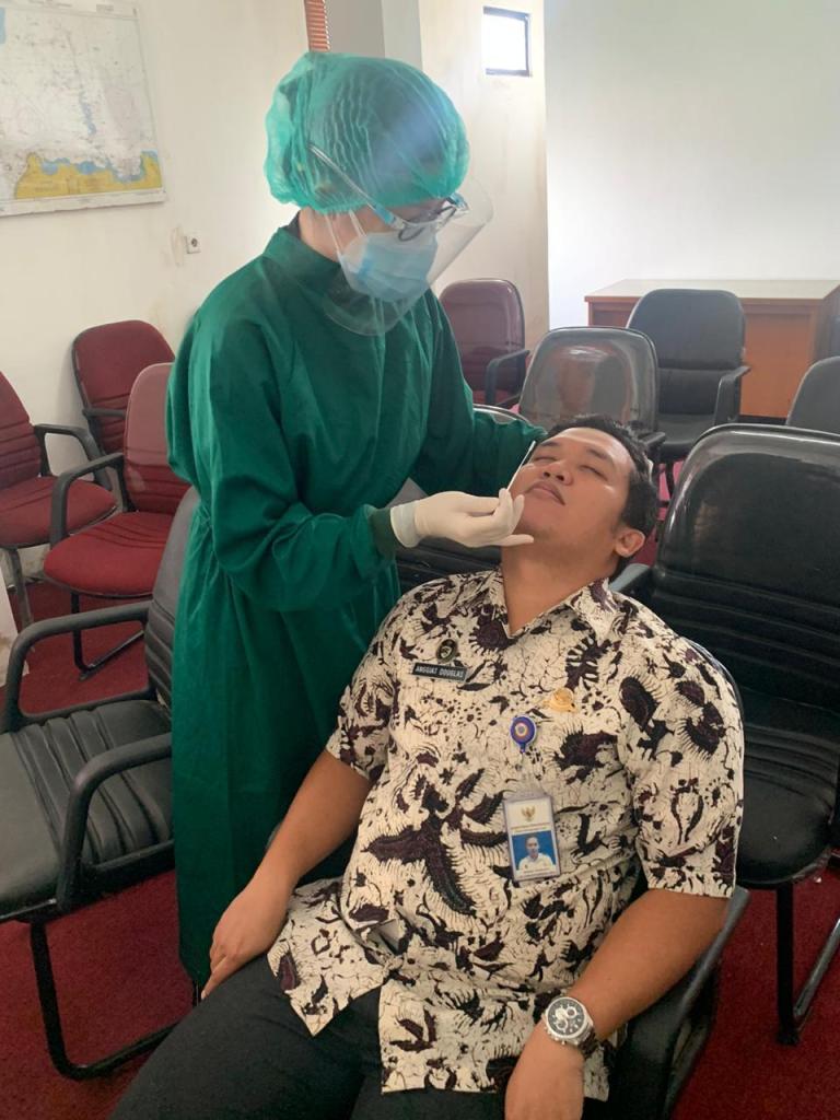 Dalam rangka mencegah munculnya cluster penyebaran virus corona (Covid -19) baru.KSOP Kelas IV Muara Angke kembali melaksanakan pemeriksaan tes usap (swab test) terhadap 32 aparatur sipil negara (ASN) dan 7 honorer PPNPN pasca libur panjang, Selasa (03/11/20) yang lalu.Kepala Kantor KSOP Kelas IV Muara Angke, Anggiat Douglas Silitonga, S.SiT, M.MTr, melauli keterangan diterima Mimbar Maritim hari ini, Kamis (5/11/2010) mengatakan disela-sela rapid test lalu sebelum libur panjang, pihaknya akan melakukan pemeriksaan tes usap (swab) pasca libur panjang kepada seluruh Pegawai Kantor KSOP Muara Angke.