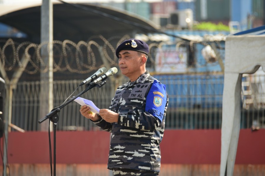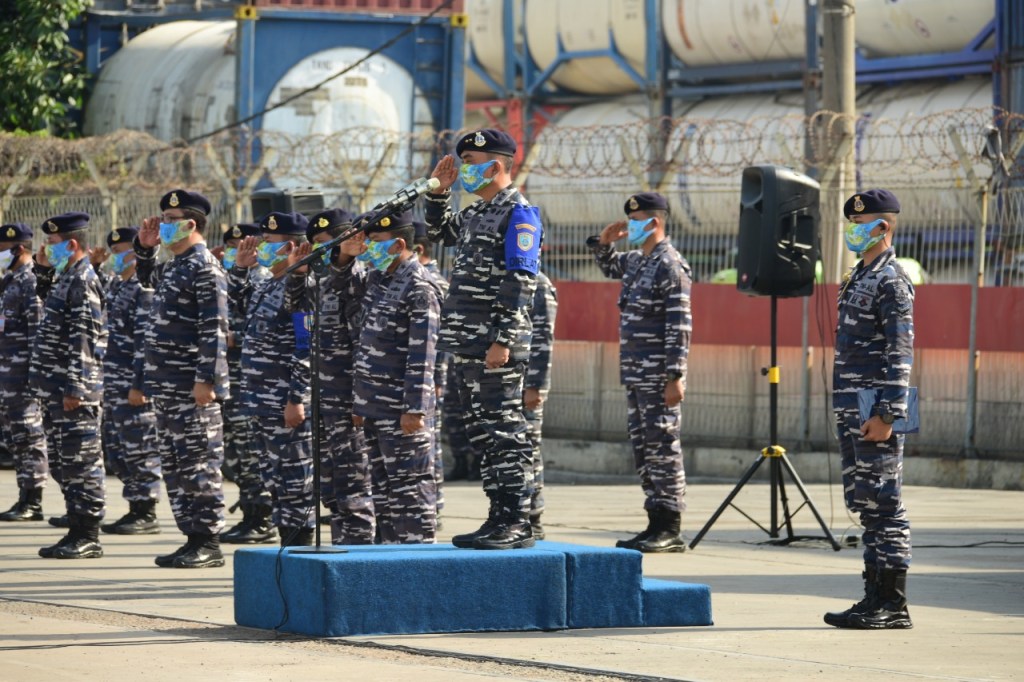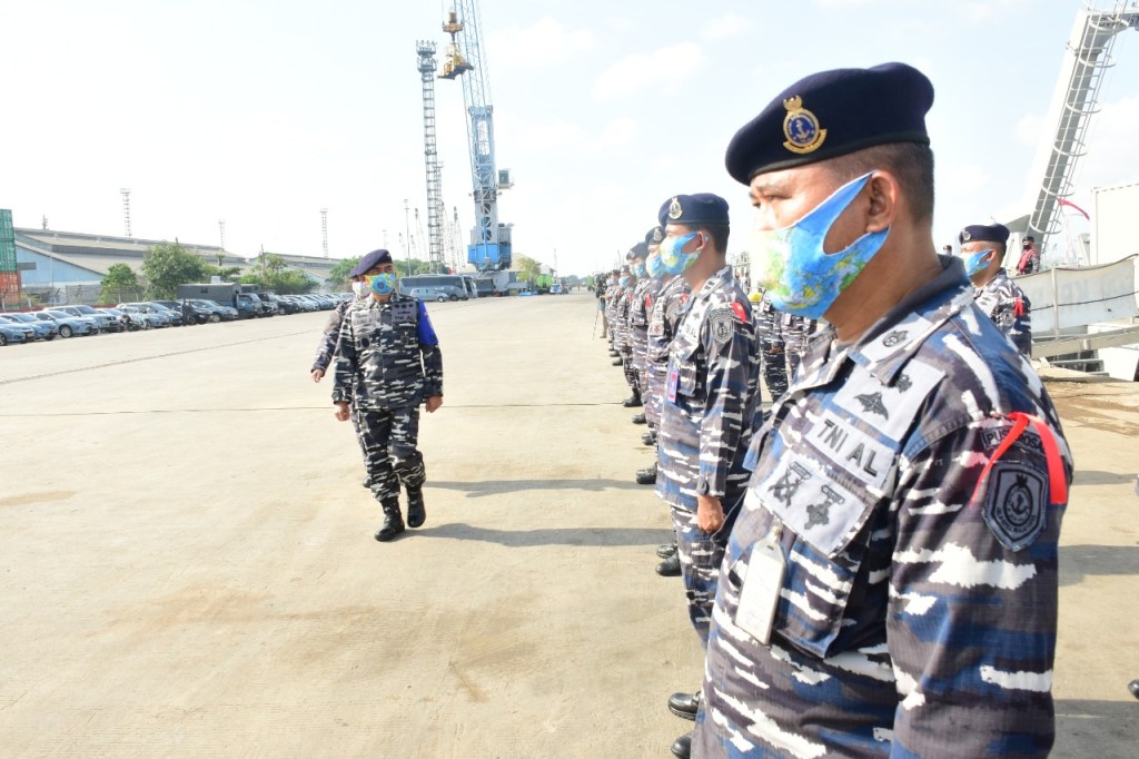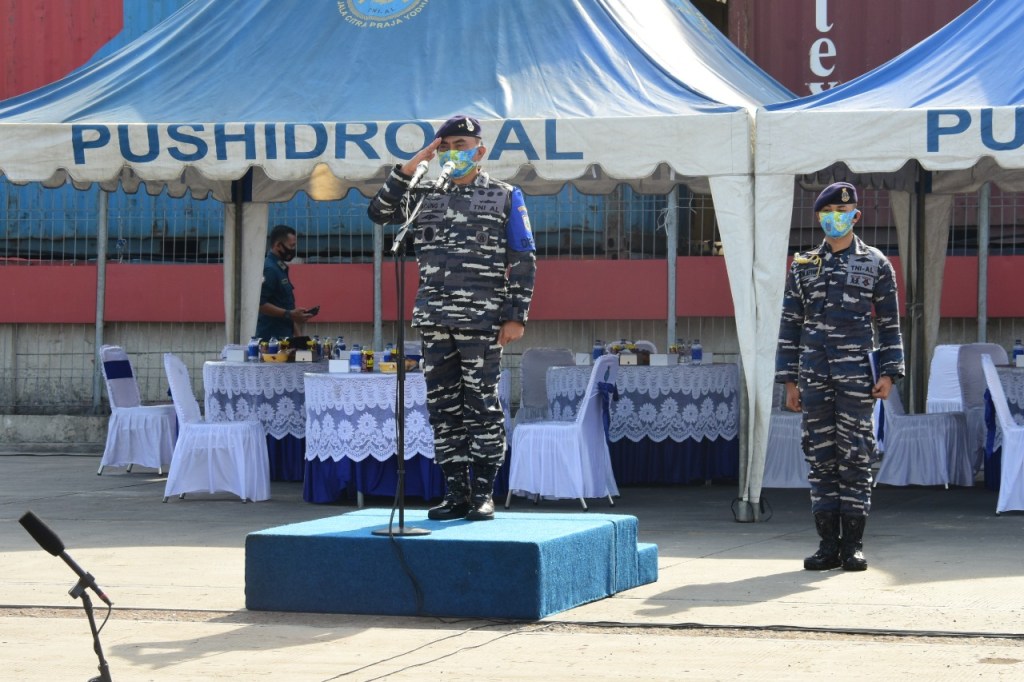 Kepala Pusat Hidrografi dan Oseanografi TNI AL (Kapushidrosal) Laksamana Muda TNI Agung Prasetiawan, M.A.P. melepas manuvra lapangan(Manlap) Latihan Survei dan pemetaan (Latsurta) Hidro Oseanografi T.A 2020 di Dermaga Terminal 04, Jakarta Internasional Container Terminal (JICT), Tanjung Priok, Jakarta Utara, hari ini Jum’at (13/11/2020).Sebelum pelepasan manlap dilakukan apel gelar pasukan, yang dimulai laporan komandan KRI Rigel-933 Letkol Laut (P) Jaenal Mutaqim kepada Kapushidrosal tentang kesiapan pasukan mengikuti manlap.
