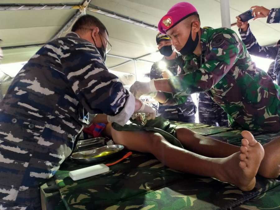 “Karena kita keterbatasan tenaga medis dan juga peralatan maka kita hanya terima 7 orang anak saja untuk dikhitan,” ujar Komandan KRI Teluk Manado- 537, Letkol Laut (P) Agung Ariwibowo, S.E., M. Tr. Opsla.