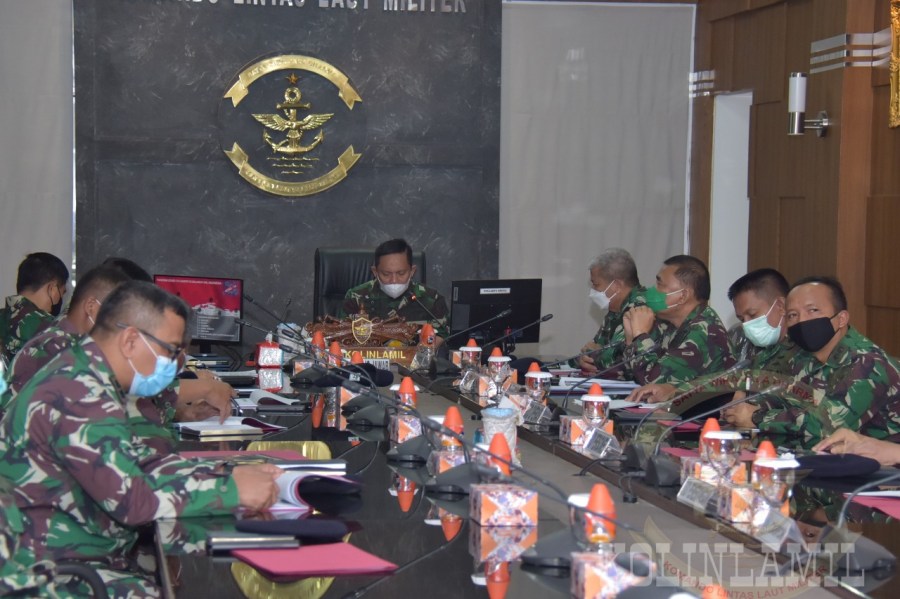 Panglima Komando Lintas Laut Militer (Kolinlamil) Laksda TNI Irvansyah, S.H., CHRMP, M.Tr Opsla menyampaikan Keputusan Konsep Umum Pelibatan Kolinlamil dalam menghadapi kontijensi tahun 2022.Penyampaian yang diawali dengan perkiraan intelijen terkini oleh Asisten Intelijen (Asintel) Kolinlamil Kolonel Laut (E) Gunawan Purwo Handoko dan penyampaian konsep strategi pelibatan Kolinlamil oleh Asisten Operasi (Asops) Kolinlamil Kolonel Laut (P) Nanan Isnandar ini berlangsung di ruang rapat Panglima, Gedung Laut Nusantara, Mako Kolinlamil, Tanjung Priok, Jakarta Utara, Kamis (11/2/2021).