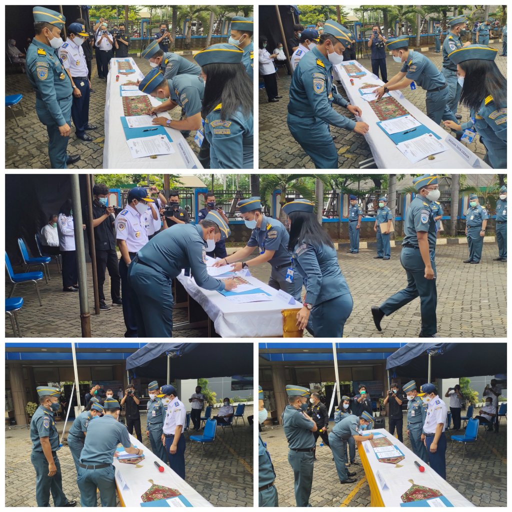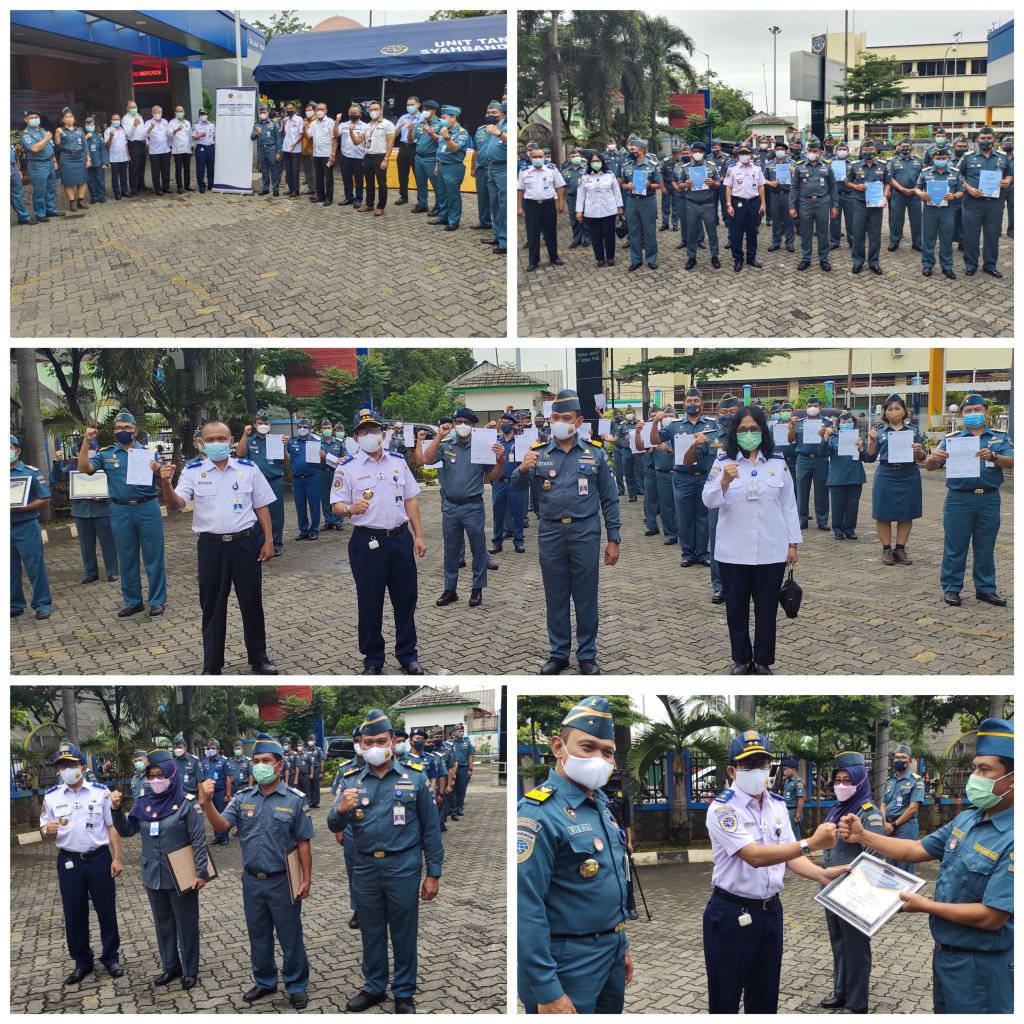 Kementerian Perhubungan Cq Direktorat Jenderal Perhubungan Laut melalui Kantor Kesyahbandaran Utama Pelabuhan Tanjung Priok, bertempat di halaman Kantor Kesyahbandaran Utama Pelabuhan Tanjung Priok, Rabu (17/2/2021). Telah dilaksanakan kegiatan dalam rangka memberikan semangat dan optimis kepada seluruh pegawai KSU Tanjung Priok, melalui komitmen bersama dalam membangun zona integritas dengan harapan agar dapat meraih predikat WBK tahun 2021.Sesuai dengan Pasal 1 angka 1 Permen PANRB 49/2011, Pakta Integritas merupakan dokumen yang berisi pernyataan atau janji kepada kepada diri sendiri tentang komitmen melaksanakan seluruh tugas, fungsi, tanggung jawab, wewenang dan peran sesuai dengan peraturan perundang-undangan dan kesanggupan. Untuk tidak melakukan korupsi dan nepotisme.