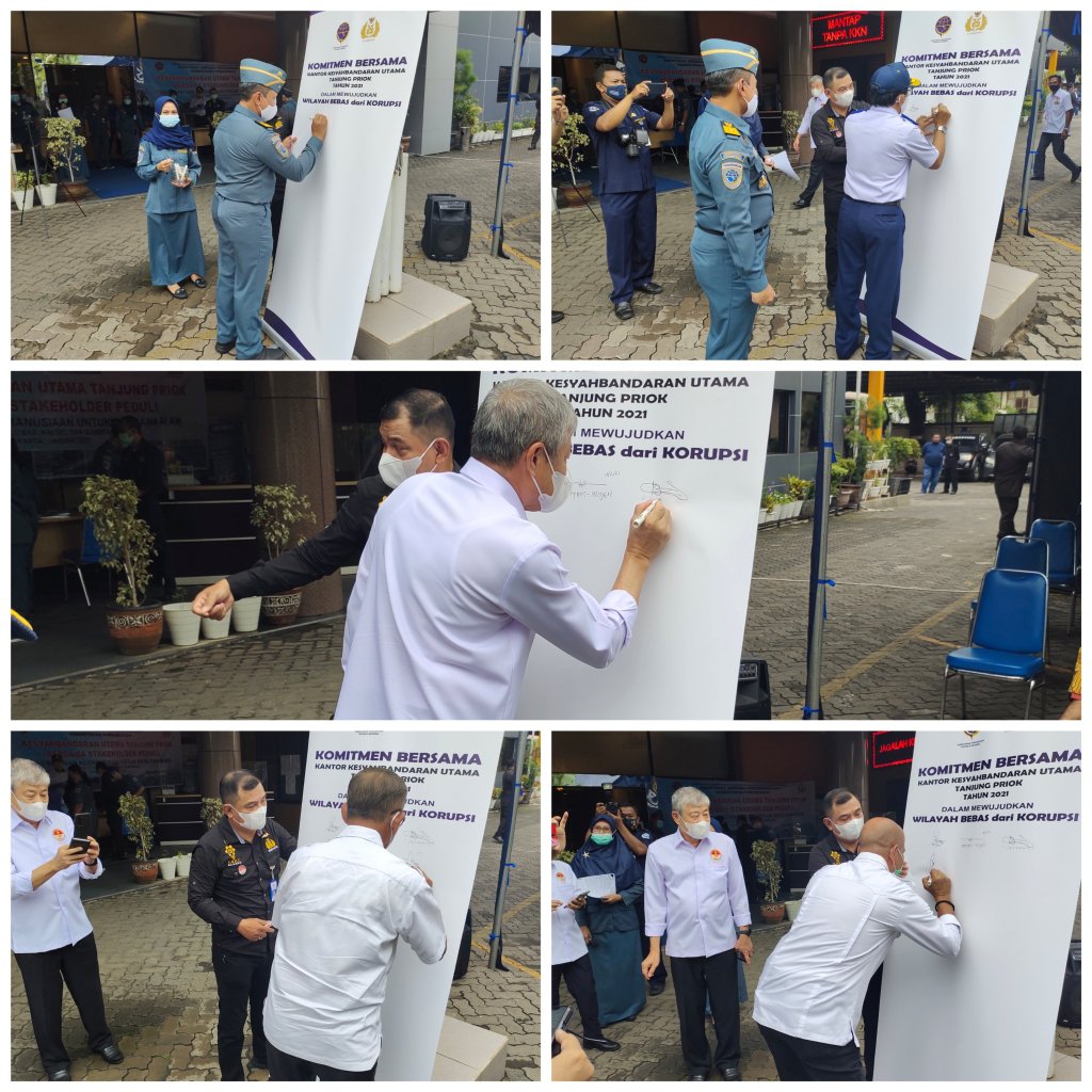 Hal ini, menjadi salah satu bagian wujud komitmen KSU Tanjung Priok dan telah disiapkan suatu board ada Bender bertuliskan komitmen bersama Kantor Kesyahbandaran Utama Tanjung Priok tahun 2021. Untuk mewujudkan wilayah WBK dan diharapkan para undangan, pelanggan dan mitra bersama – sama untuk menandatangani dengan para jajaran KSU Tanjung Priok.