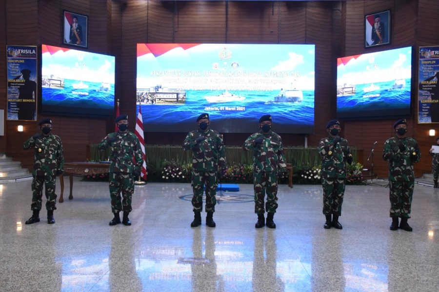 Kepala staf Angkatan Laut Laksamana TNI Yudo Margono, S.E., M.M. meresmikan jabatan Komandan Pusat Hidro-Oseanografi TNI AL (Danpushidrosal), di Markas Besar Angkatan Laut, Cilangkap, Jakarta Timur, Senin (1/3/2021).Kegiatan peresmian jabatan Danpushidrosal dilaksanakan bersamaan dengan peresmian jabatan Komandan Komando Pembinaan Doktrin Pendidikan dan Latihan TNI AL (Kodiklatal) dan serah terima jabatan Kepala Dinas Kesehatan TNI AL (Kadiskesal).