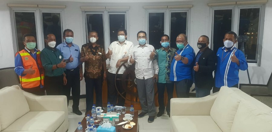 Pertemuan jajaran manajemen IPC Cabang Tanjung Priok dengan stakeholder pengurus INSA Jaya, berjalan dengan lancar dan tetap menerapkan protokol kesehatan mencegah Covid-19. (MM-01).