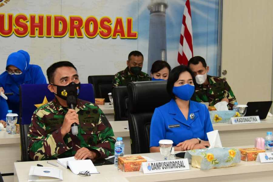 Kegiatan webinar ini di buka oleh Komandan Pusat Hidro-Oseanografi TNI Angkatan Laut (Danpushidrosal) Laksamana Muda Dr. Agung Prasetiawan, M.A.P. didampingi Ketua CBS Jalasenastri Pushidrosal Ny. Ita Agung Prasetiawan di Pusdalops Pushidrosal, Jl. Pantai Kuta V/1 Ancol Timur, Jakarta Utara, hari ini Minggu (7/3/2021).