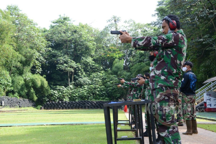 Pada latihan tersebut, para perwira melatih kemampuan menggunakan senjata pistol jenis FN, sedangkan prajurit bintara dan tamtama menggunakan senjata laras panjang jenis SS1.(MM – Dispen).