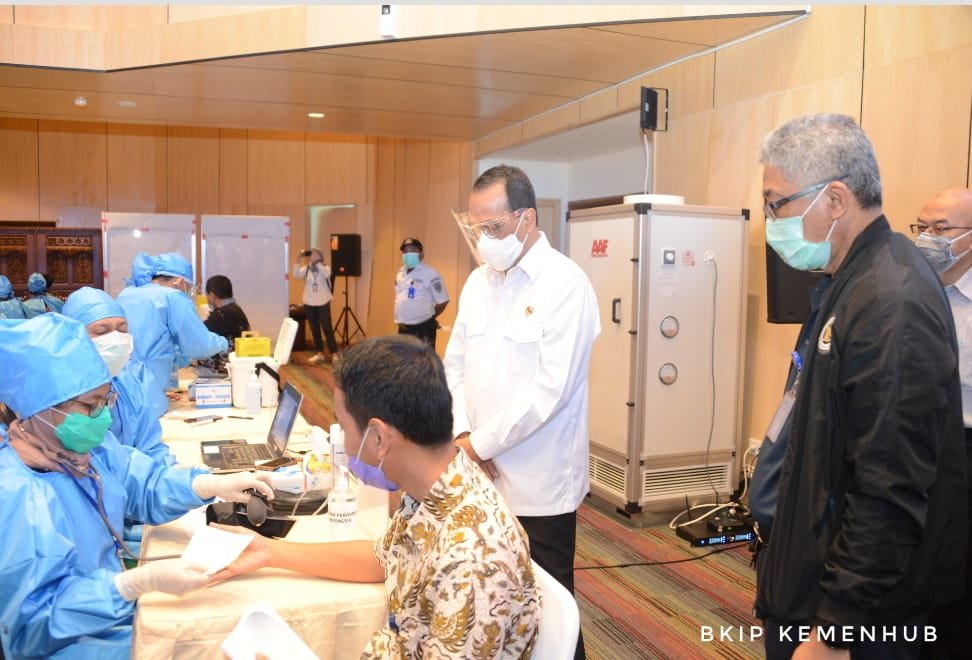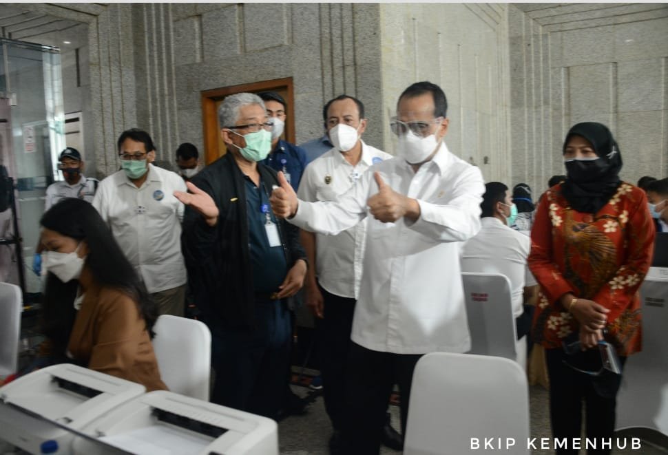 Kementerian Perhubungan menggelar vaksinasi bagi 10.000 pegawai. Menteri Perhubungan (Menhub) Budi Karya Sumadi meninjau langsung proses pelaksanaan vaksinasi bagi pegawai Kemenhub untuk tahap pertama di kantor Kementerian Perhubungan RI , Jakarta, hari ini Kamis (11/3/2021).Vaksinasi tahap pertama berlangsung selama 4 hari mulai tanggal 11 – 14 Maret 2021, dengan target 2500 orang per harinya selama 4 hari. Pada tahap awal ini, vaksinasi dilakukan kepada seluruh pegawai Kementerian Perhubungan yang berlokasi di Jakarta dan sekitarnya.