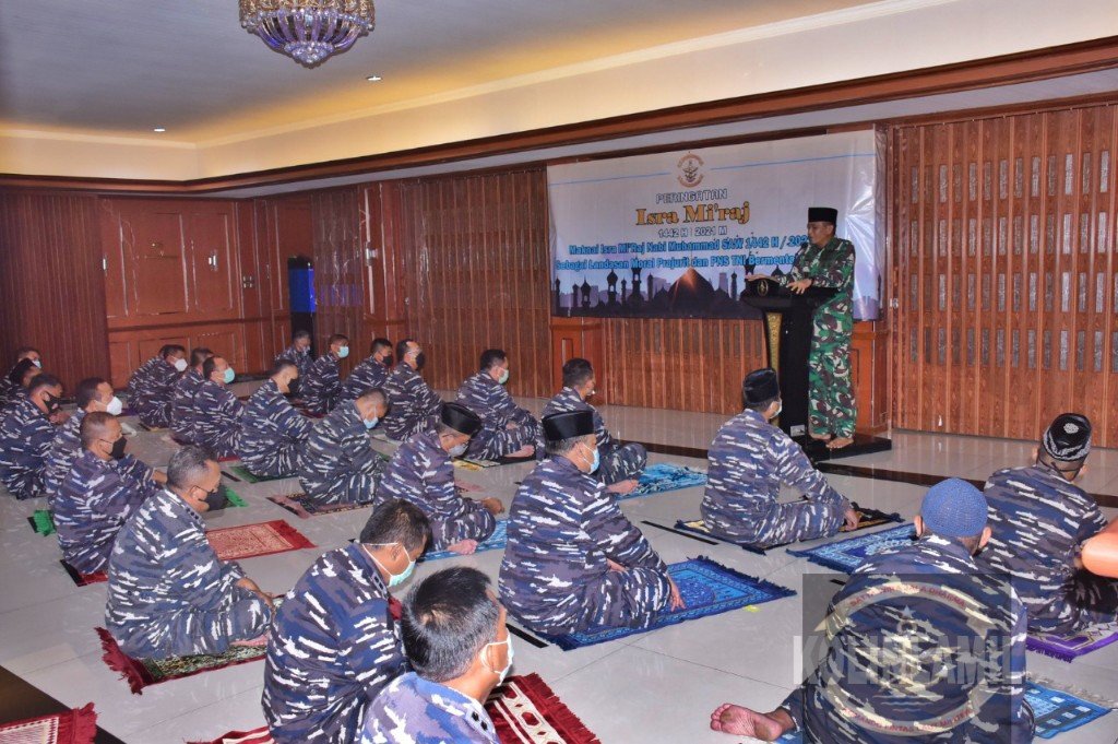 Peringatan isra Miraj merupakan upaya pembinaan mental kerohanian yang menjadi salah satu sub sistem dari pembinaan personel bagi prajurit TNI Angkatan Laut beserta keluarganya.