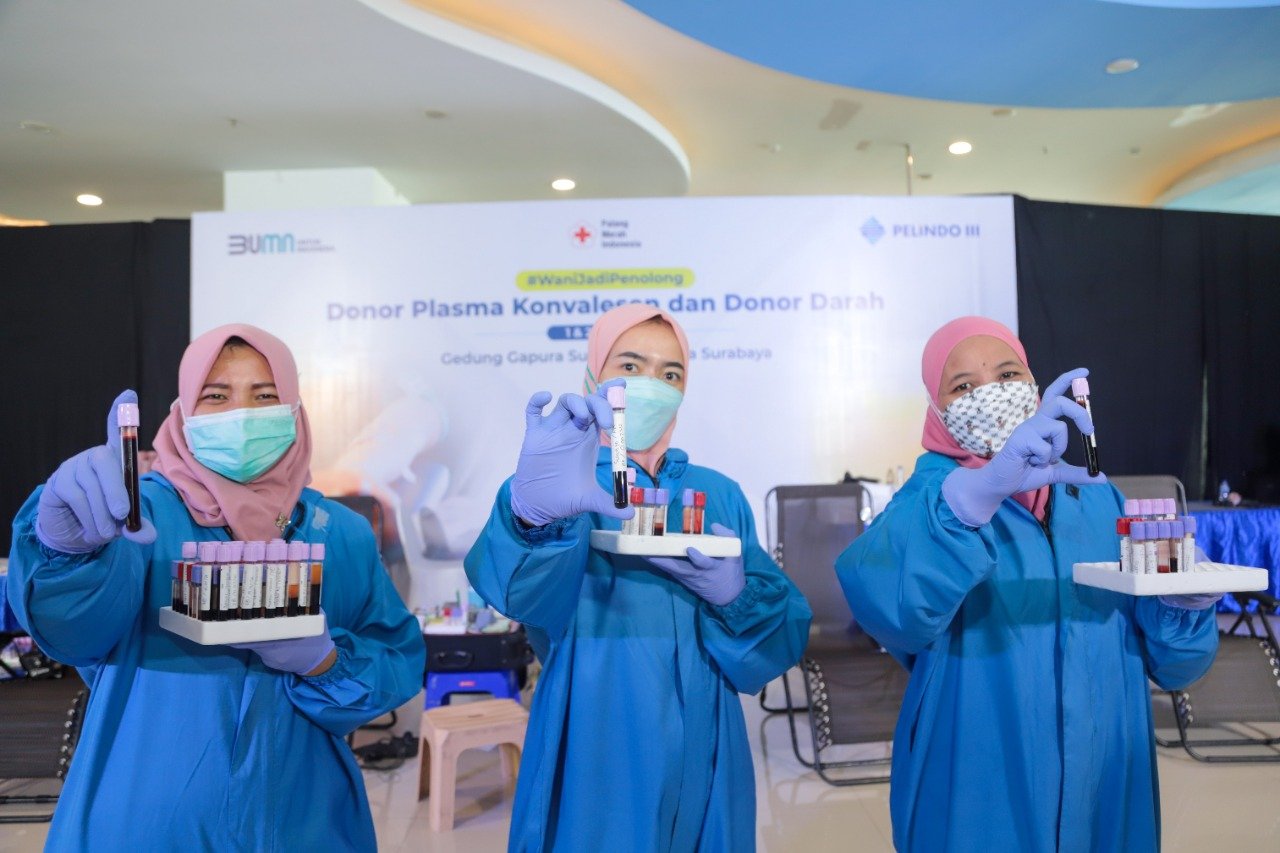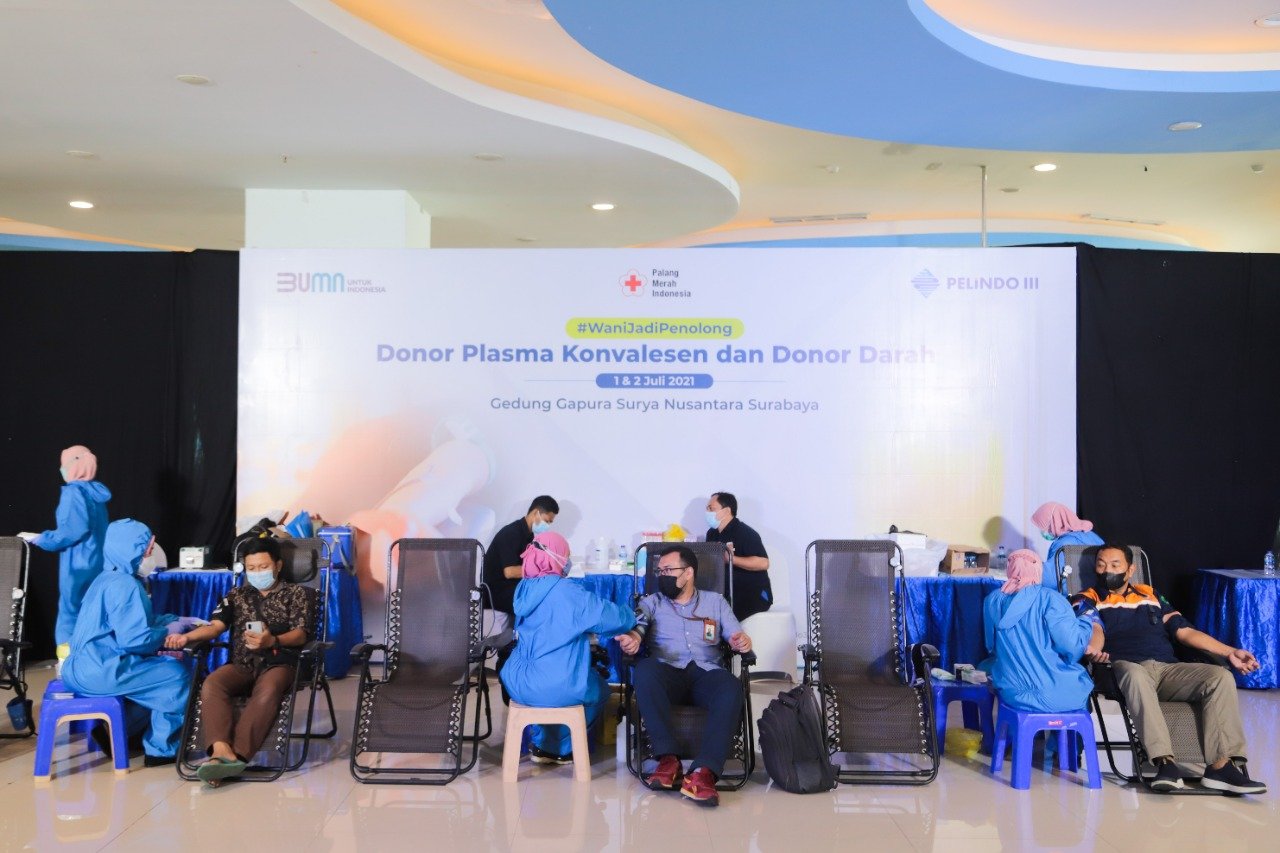 Lonjakan kasus aktif Covid-19 beberapa waktu terakhir sekaligus juga dibarengi munculnya varian baru virus corona membuat kondisi stok darah dan plasma konvalesen di Palang Merah Indonesia Kota Surabaya menipis. Hal ini membuat PT Pelabuhan Indonesia III (Persero) atau Pelindo III kembali tergerak untuk mengetuk hati penyintas Covid-19 dan masyarakat mengikuti skrining plasma konvalesen melalui program kolaborasi dengan Palang Merah Indonesia (PMI) Unit Donor Darah (UDD) Kota Surabaya, Kamis (01/7/2021)