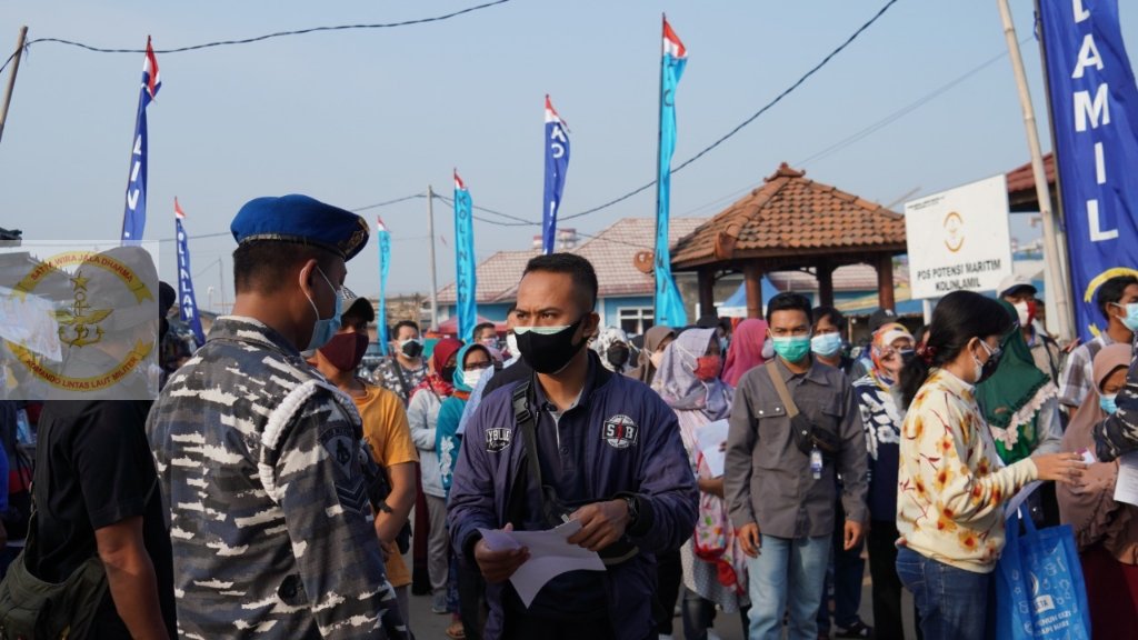 Kegiatan serbuan vaksinaritim diwilayah pesisir Muara Tawar, disambut antusias oleh ratusan masyarakat pesisir, hal tersebut terlihat dari antrian panjang mulai dari parkiran gedung balai nelayan hingga Kantor UPTD TPI Pal jaya. Namun dengan kesigapan penuh prajurit Kolinlamil di bantu Bhabinkamtibmas Polsek Tarumajaya dan Babinsa Koramil 02/Tarumajaya ketertiban antrian dapat teratasi sehingga proses vaksinasi berjalan lancar.