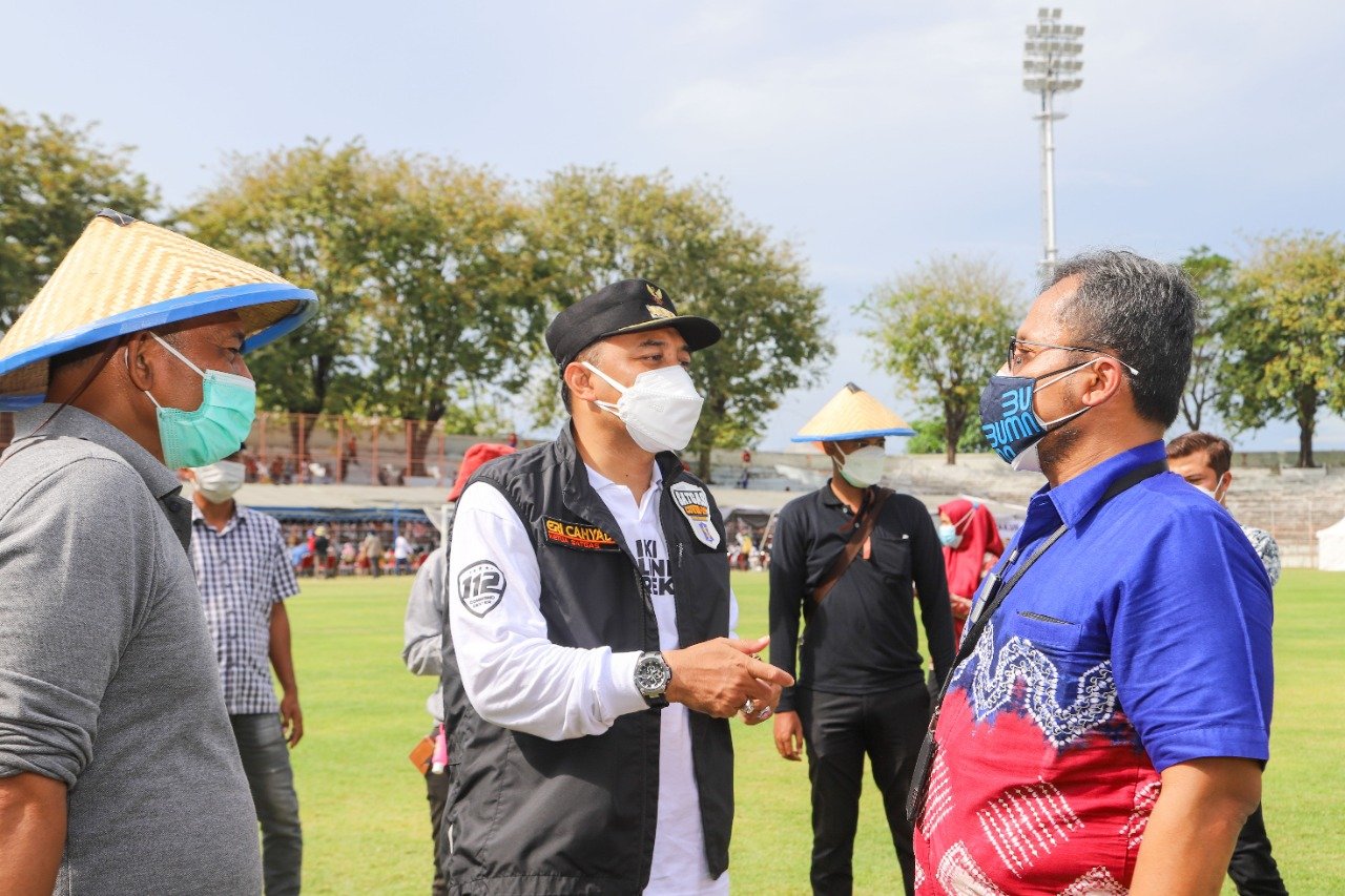 Berbagai kalangan yang terdiri dari dunia usaha, komunitas, maupun perorangan menunjukkan dukungannya kepada Pemerintah Kota Surabaya dalam penanganan pandemi Covid-19. Salah satu dukungan itu diwujudkan dalam pemberian sejumlah bantuan yang diterima langsung oleh Walikota Surabaya, Eri Cahyadi di Gelora 10 November, Jumat (9/7/2021).