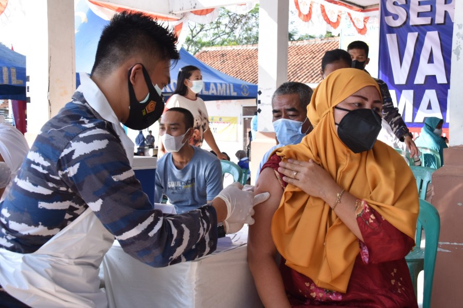Serbuan Vaksin Masyarakat Maritim di pesisir pantai utara Subang ini melibatkan vaksinator 50 orang yang bekerja sama dengan Puskesmas Blanakan.