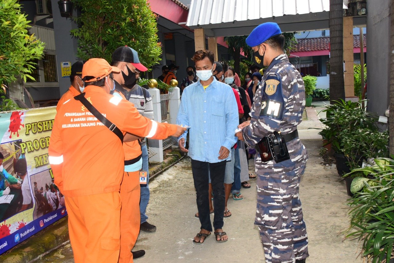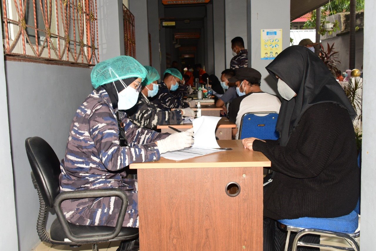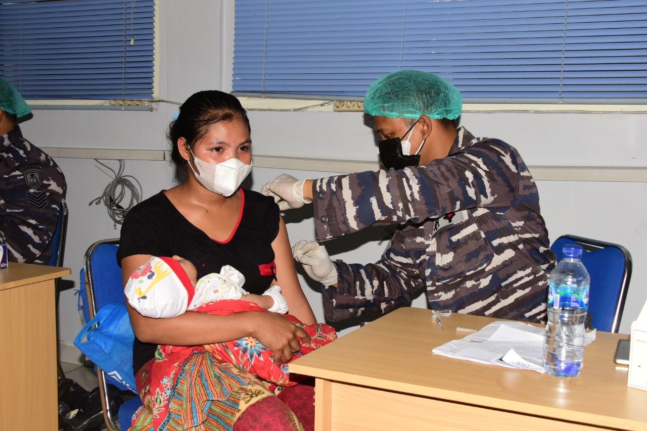Sebagai bentuk dukungan terhadap upaya pemerintah dalam penanggulangan Covid-19, TNI Angkatan Laut kembali menggelar serbuan vaksinasi bagi masyarakat maritim di kawasan Tanjung Priok yang dipusatkan di SMPN 55 Jakarta, Jl. kampung Bahari, Tanjung Priok, Jakarta Utara, Kamis (5/8/2021).