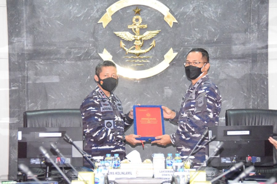 Satya Wira Jala Dharma. Jelang serah terima jabatan Panglima Komando Lintas Laut Militer (Kolinlamil) dari Laksda TNI Arsyad Abdullah kepada Laksma TNI Erwin S Aldedharma, yang dilaksanakan Senin (9/8/2021).