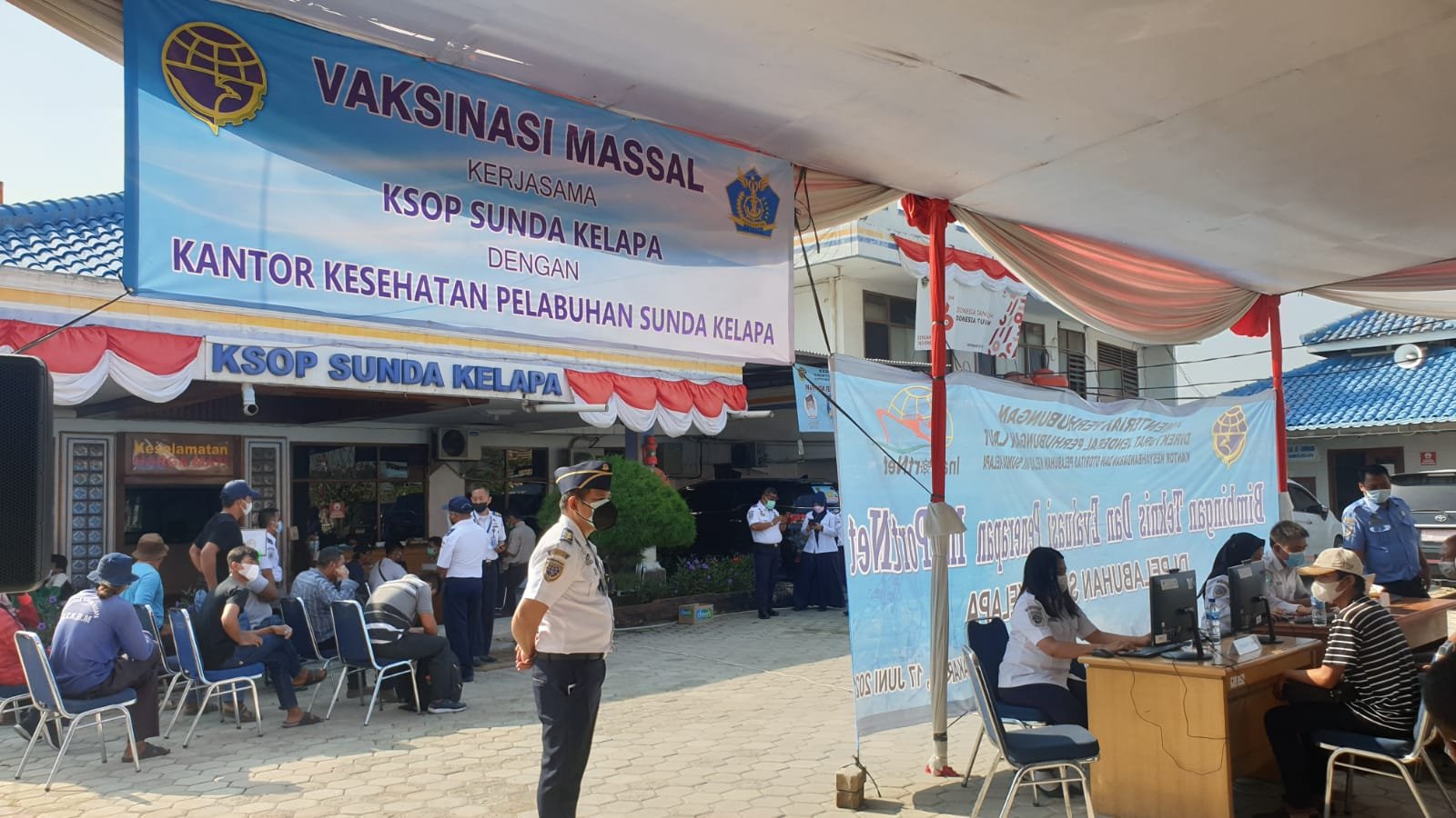 Direktorat Jenderal Perhubungan Laut melalui KSOP Kelas III Sunda Kelapa kembali menggelar kegiatan vaksinasi yang dilaksanakan di halaman kantor KSOP kelas III Sunda Kelapa Jakarta Utara, hari ini Senin (9/8/2021).
