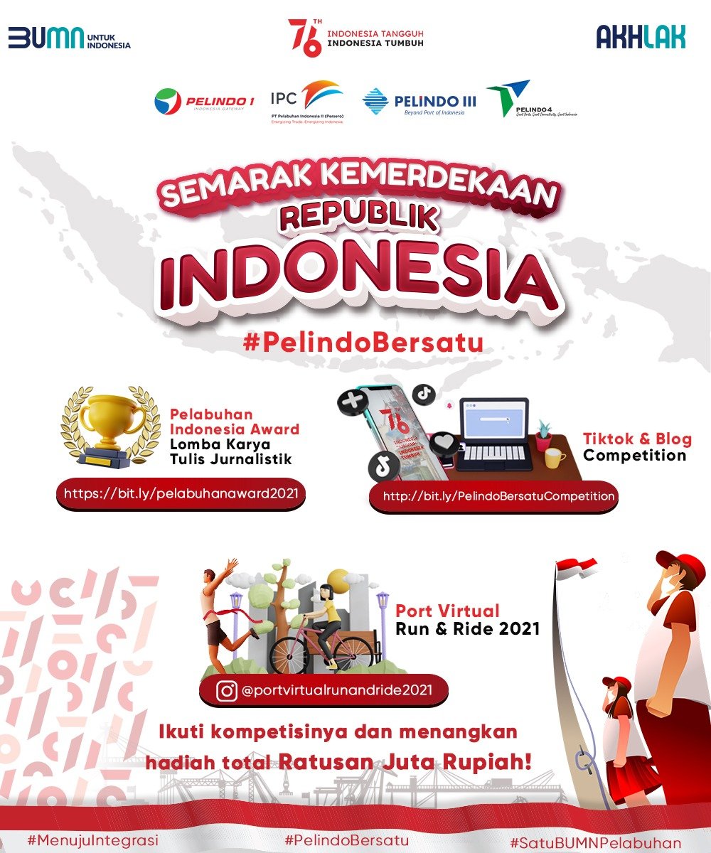 Memeriahkan HUT Kemerdekaan RI ke-76 tahun ini, PT Pelabuhan Indonesia I, II, III dan IV (Persero) menggelar berbagai kegiatan lomba yang dapat diikuti oleh pegawai, keluarga pegawai dan masyarakat umum.