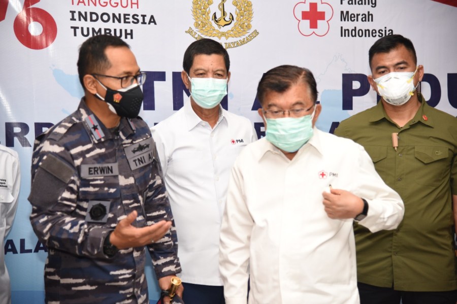 Kepala Staf Angkatan Laut (Kasal) Laksamana TNI Yudo Margono bersama Ketua umum Palang Merah Indonesia Pusat H.M. Jusuf Kalla dan didampingi Panglima Kolinlamil Laksma TNI Erwin S Aldedharma melakukan peninjauan langsung kegiatan tersebut.