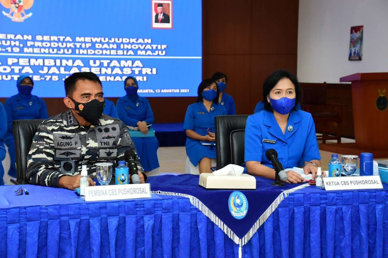Hadir dalam vicon tersebut Ketua CBS Jalasenastri Pushidrosal Ny. Ita Agung Prasetiawan dengan didampingi Komandan Pushidrosal Laksamana Madya TNI Dr. Agung Prasetiawan, M.A,P. selaku Pembina Jalasenastri Pushidrosal, serta pengurus CBS Jalasenastri Pushidrosal.