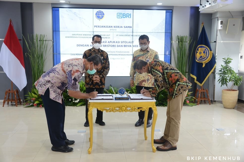 Kolaborasi ini ditandai dengan penandatanganan perjanjian kerja sama oleh Dirjen Perhubungan Laut Agus H. Purnomo dan Direktur Hubungan Kelembagaan dan BUMN BRI Agus Noorsanto, yang disaksikan langsung oleh Menteri Perhubungan Budi Karya Sumadi, di Kantor Kemenhub, Jakarta, Jumat (13/8/2021) kemarin.