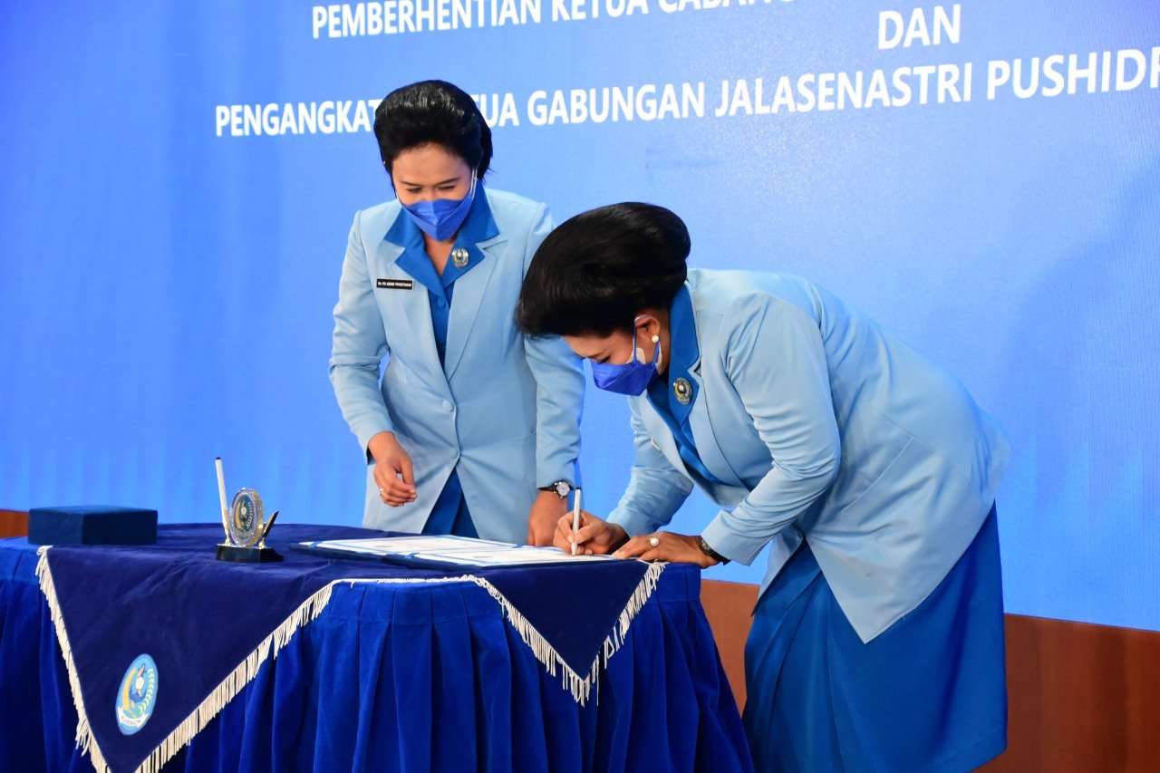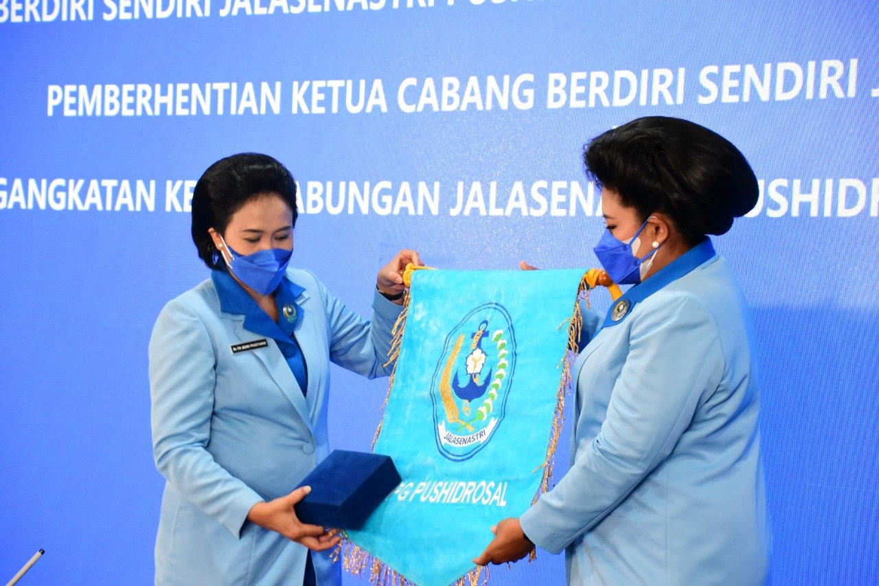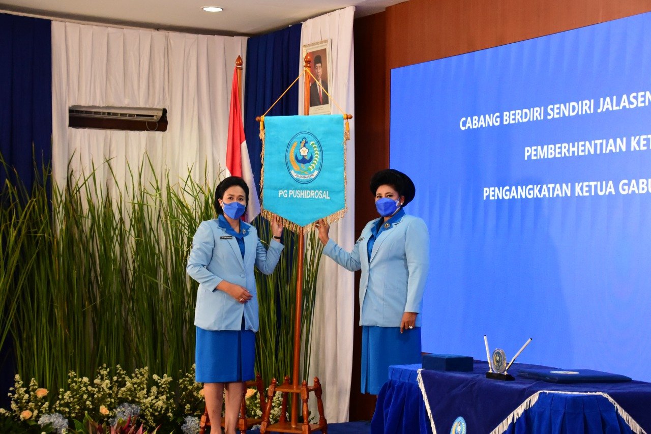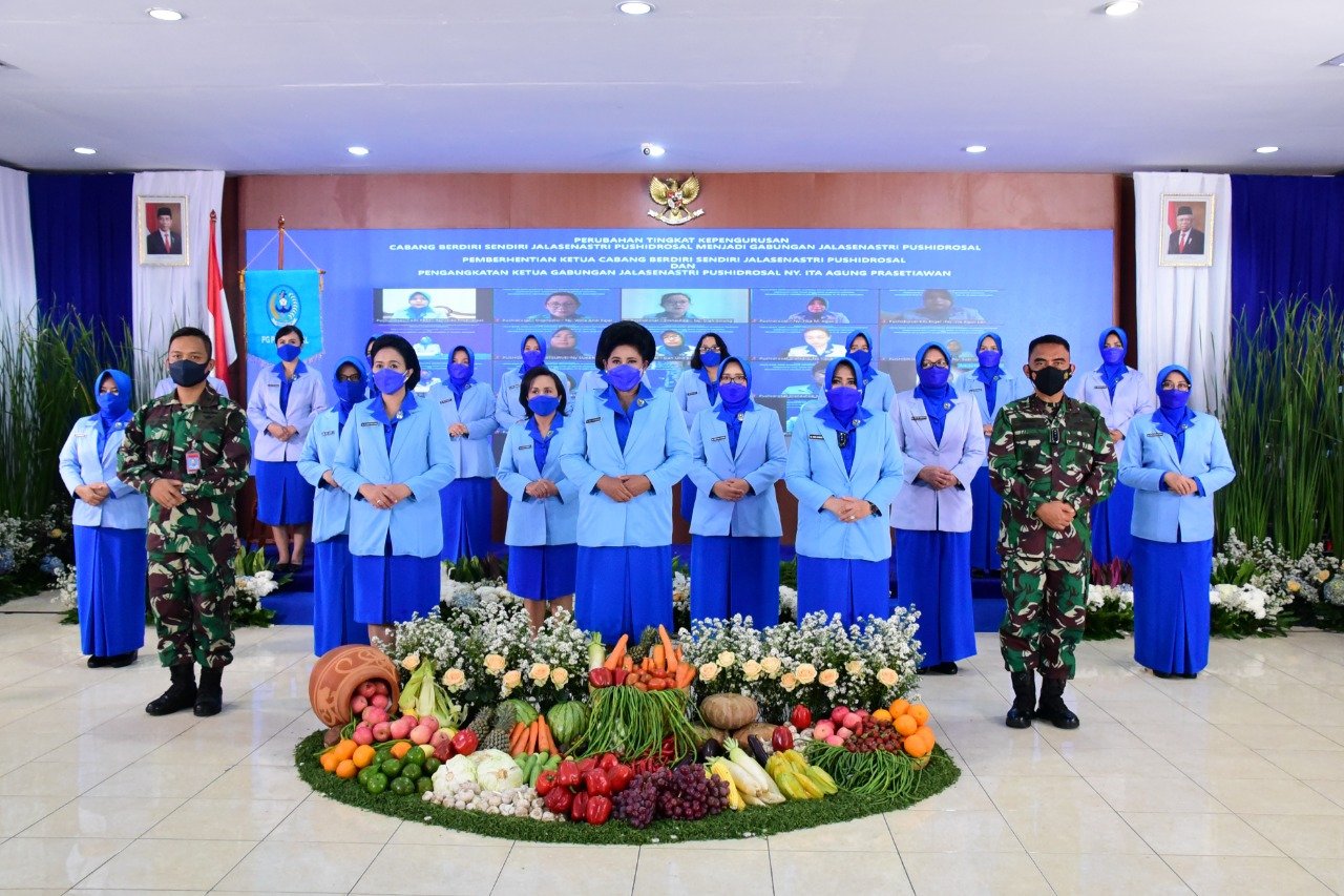 Ketua Umum Jalasenastri Ny. Vero Yudo Margono meresmikan Pengurus Gabungan (PG) Jalasenastri Pusat Hidro-oseanografi TNI Angkatan Laut (Pushidrosal) bertempat di Mako Pushidrosal, Ancol Timur, Jakarta Utara, Senin (16/8/2021).