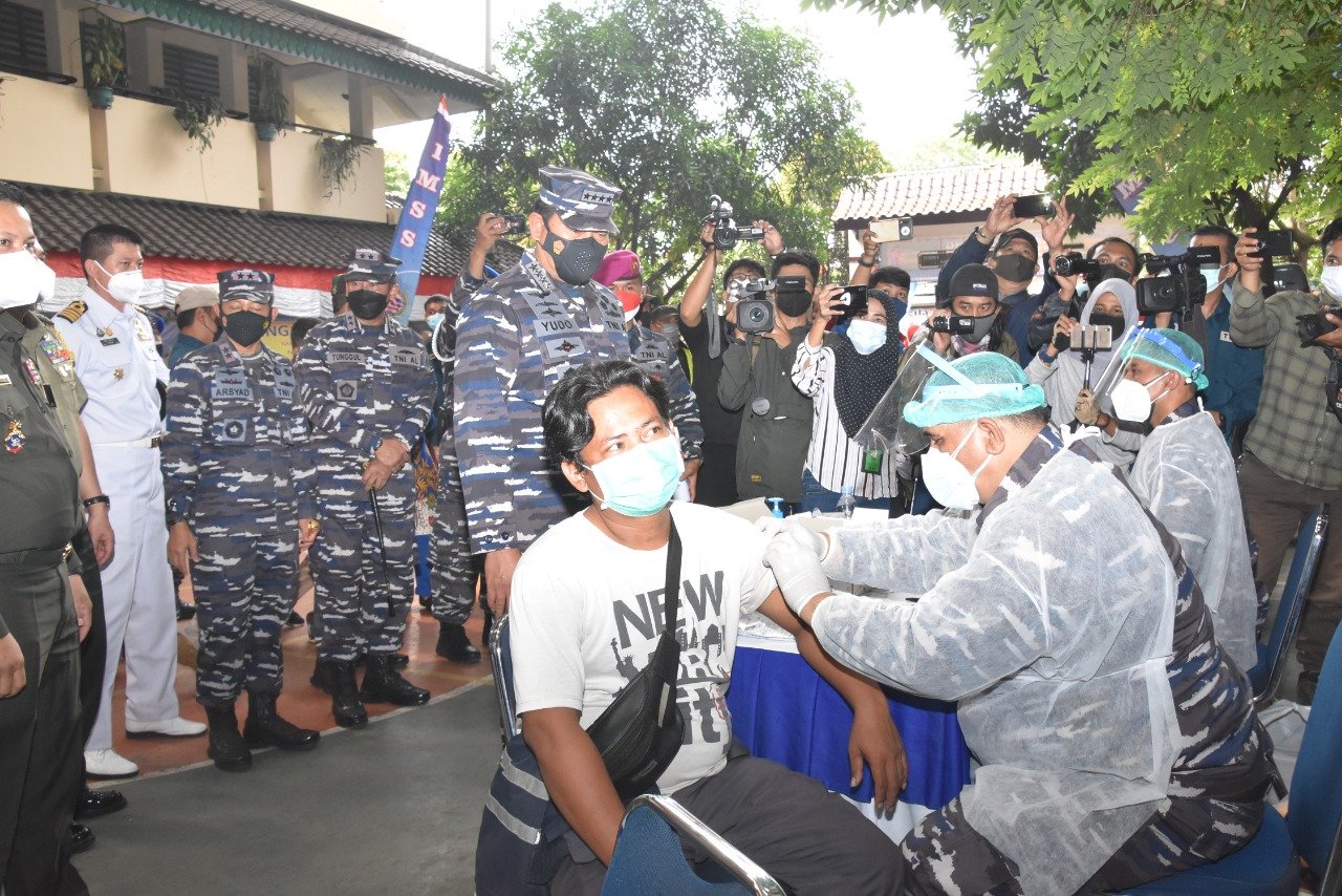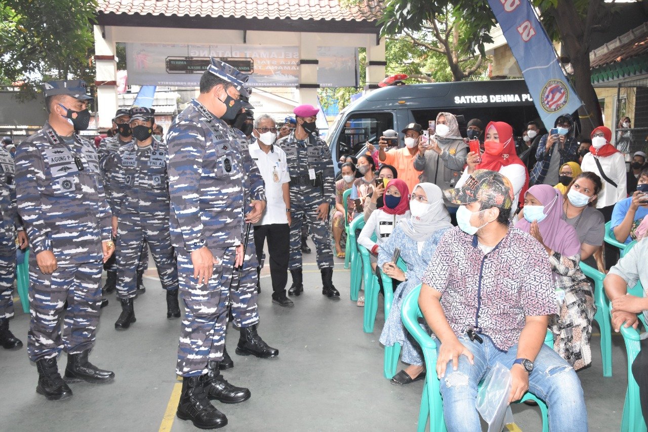 Kepala Staf Angkatan Laut (Kasal) Laksamana TNI Yudo Margono, S.E., M.M. meninjau kegiatan Vaksinasi Covid-19 dan Pemberian Bantuan Sosial langsung kepada masyarakat setempat.