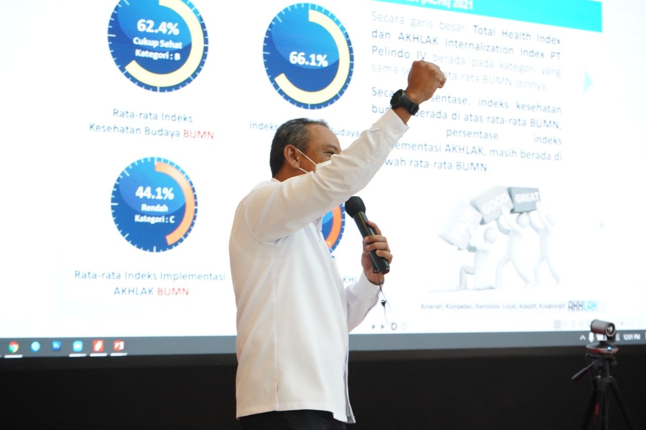 “Dengan pandemi ini kita jadi banyak belajar dalam menghadapi tantangan, kita jadi berpikir lebih cerdas dan inovatif menentukan program dan strategi yang tepat sasaran. Oleh karena itu kami meminta kepada seluruh insan Pelindo IV yang setelah integrasi Pelindo terealisir, di mana pun ditempatkan harus tetap solid dan loyal untuk menjaga perusahan dan berkontribusi positif terhadap kegiatan-kegiatan Perseroan, serta tetap dapat mengalokasikan sumber daya untuk mengeksplorasi potensi dan peluang bisnis yang berpengaruh terhadap pertumbuhan dan perkembangan perusahaan sesuai penempatan masing-masing,” tuturnya.
