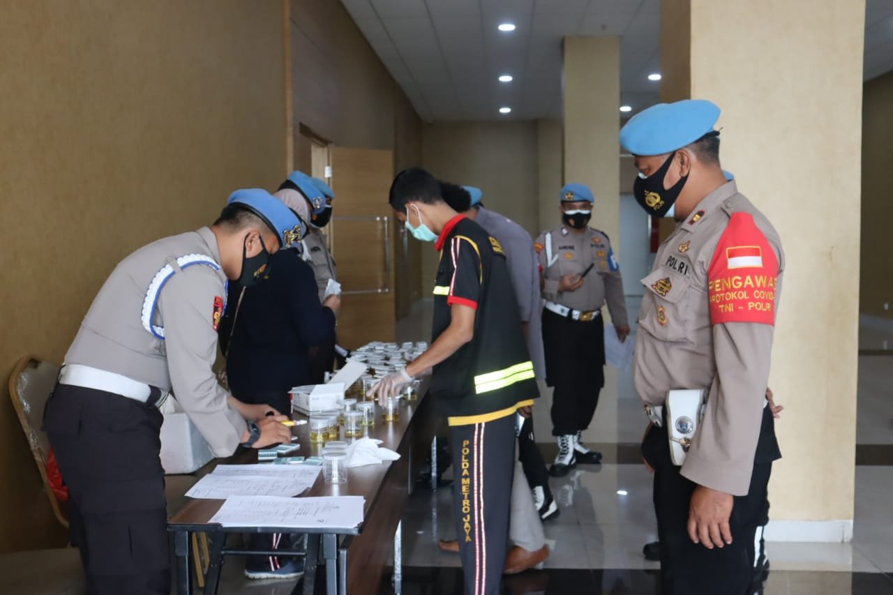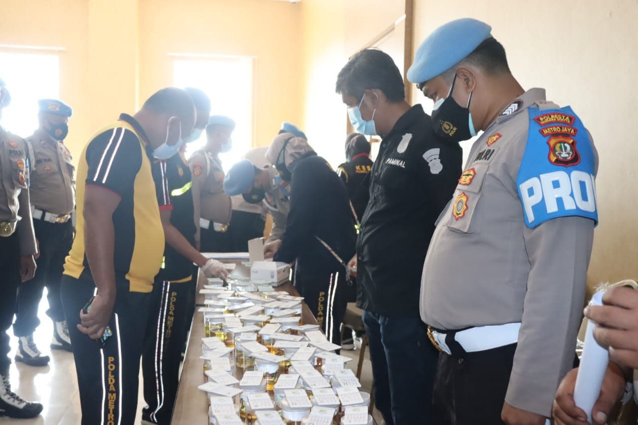 Polresta Bandara Internasional Soekarno-Hatta (Soetta) mendadak melakukan test urine besar-besaran dengan sasaran para perwira, Sabtu (28/8/21)