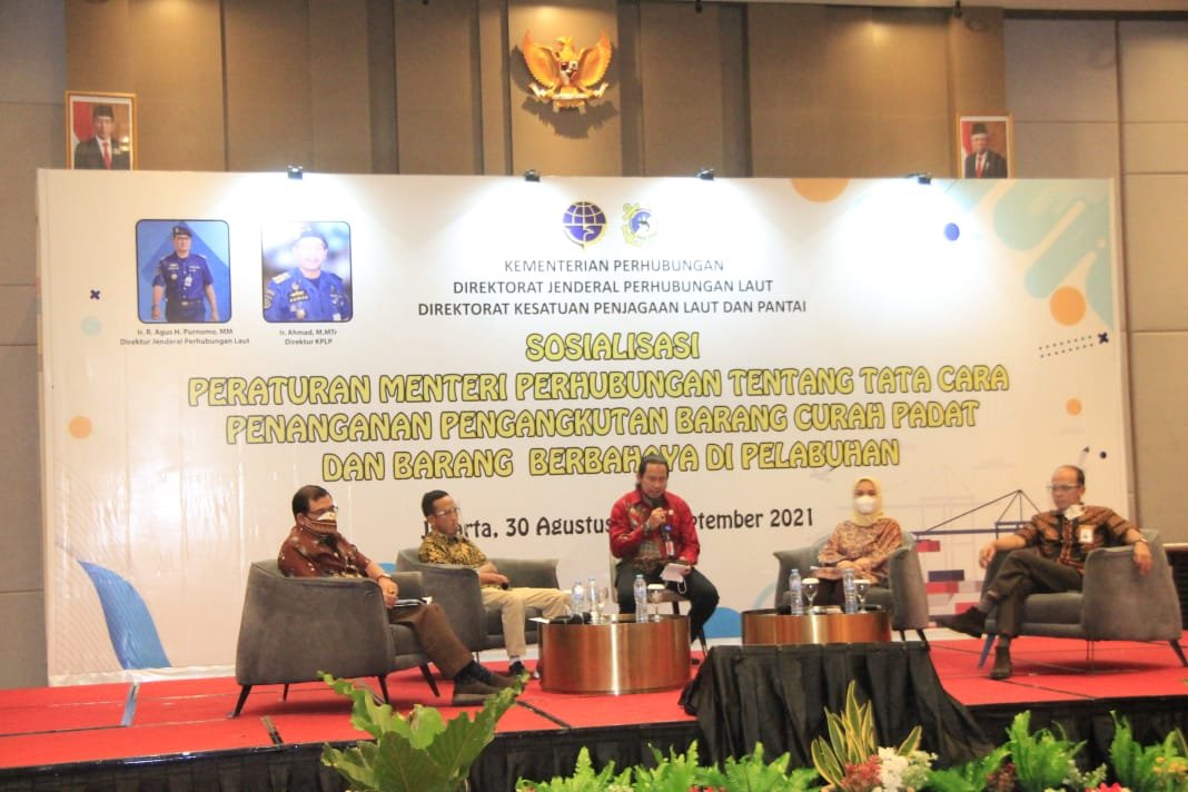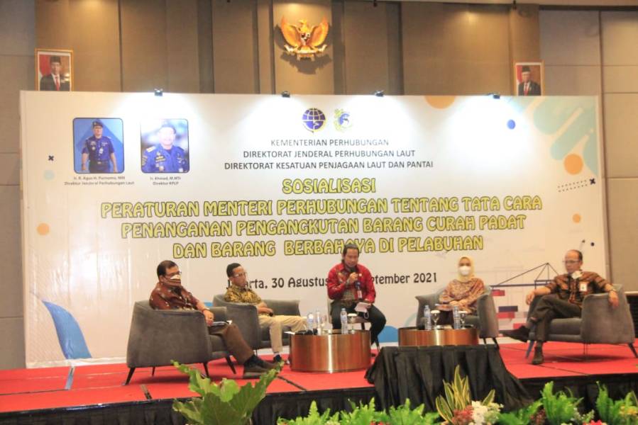 Kementerian Perhubungan Cq Direktorat Jenderal Perhubungan Laut melalui Direktorat Kesatuan Penjagaan Laut dan Pantai (KPLP) Direktorat Jenderal Perhubungan Laut menggelar Sosialisasi Peraturan Menteri Perhubungan Nomor PM 6 Tahun 2021 tentang Tata Cara Penanganan dan Pengangkutan Muatan Curah Padat dan Peraturan Menteri Perhubungan Nomor PM 16 Tahun 2021 tentang Tata Cara Penanganan dan Pengangkutan Muatan Barang Berbahaya di Jakarta di mulai hari ini, Selasa 31 Agustus sampai 1 September 2021.