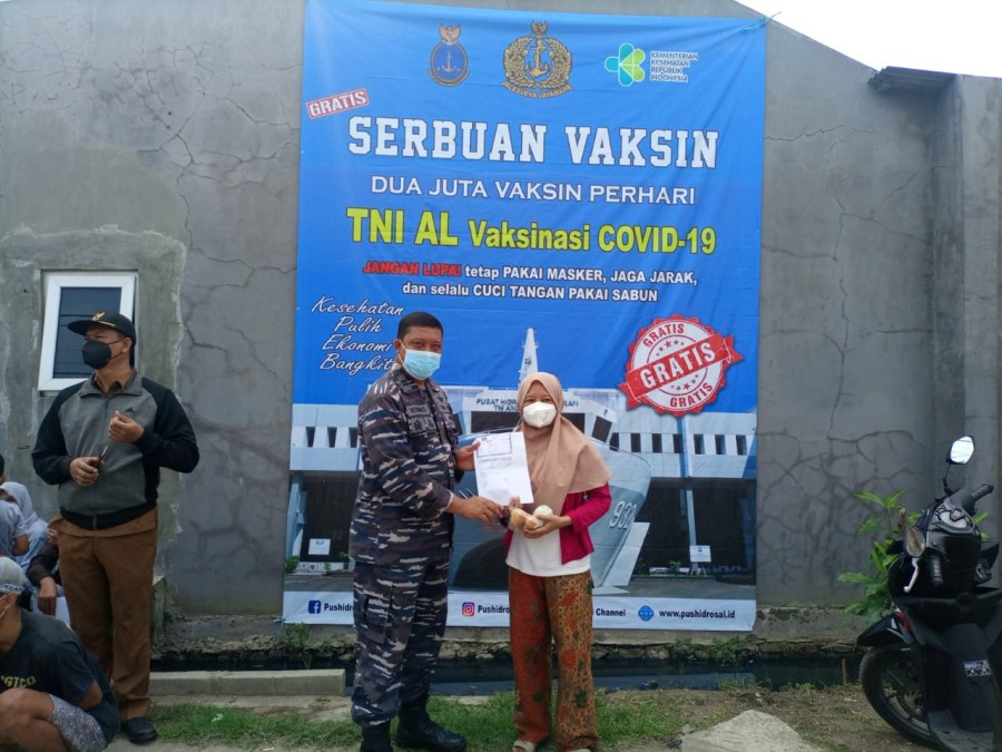 Kegiatan serbuan vaksinasi yang digelar oleh TNI Angkatan Laut (TNI AL) terus menerus digencarkan hingga saat ini. Kali ini, Pusat Hidro-Oseanografi TNI Angkatan Laut (Pushidrosal) menyasar masyarakat maritim wilayah Bekasi Utara untuk divaksinasi, yang dipusatkan di Perum Citra Swarna Permai 2 RW 10, kelurahan Samudra jaya, Kecamatan Tarumajaya, Bekasi utara. Selasa (31/8/2021).
