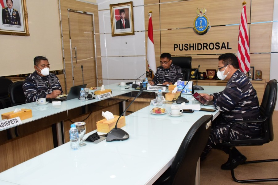 Komandan Pushidrosal Laksamana Madya TNI Dr. Agung Prasetiawan, M.A.P sebagai salah satu narasumber dalam webinar menyampaikan materi paparan tentang peran, tugas dan fungsi Pushidrosal sebagai lembaga hidrografi nasional dalam memberikan dukungan untuk keselamatan pelayaran dan kepentingan maritim nasional.