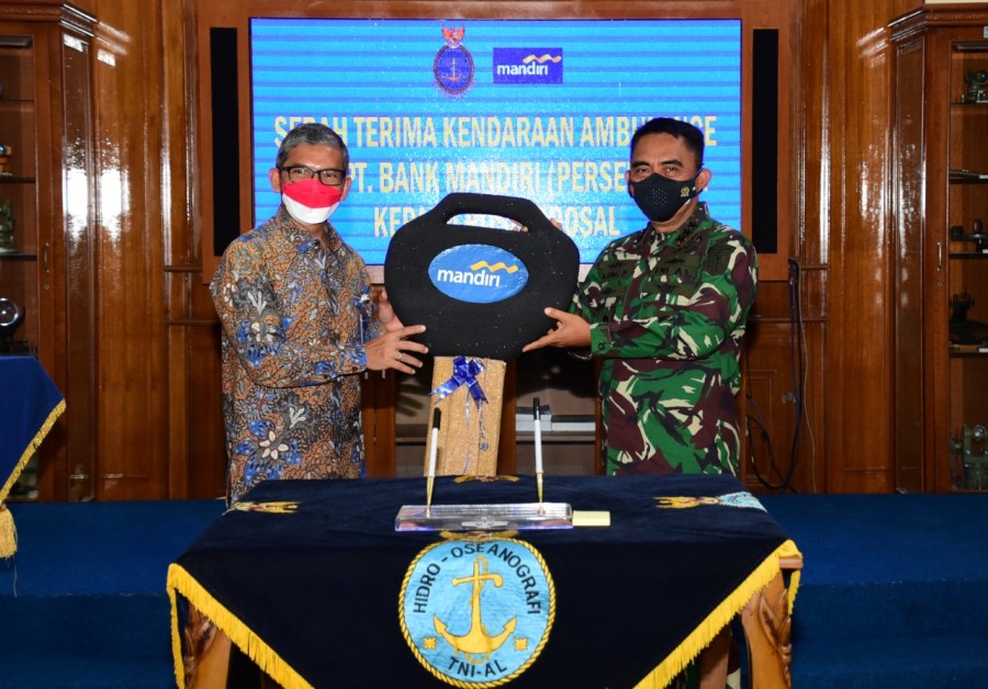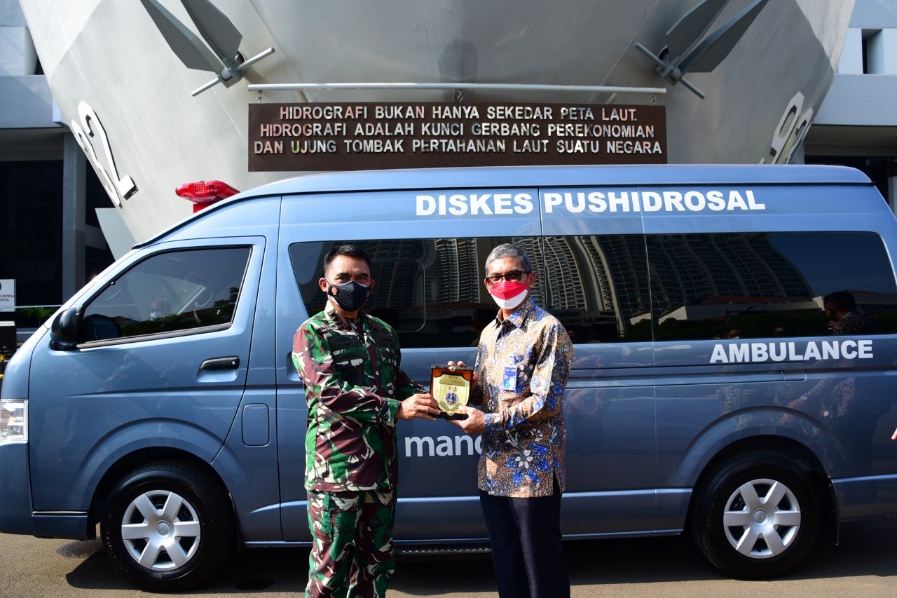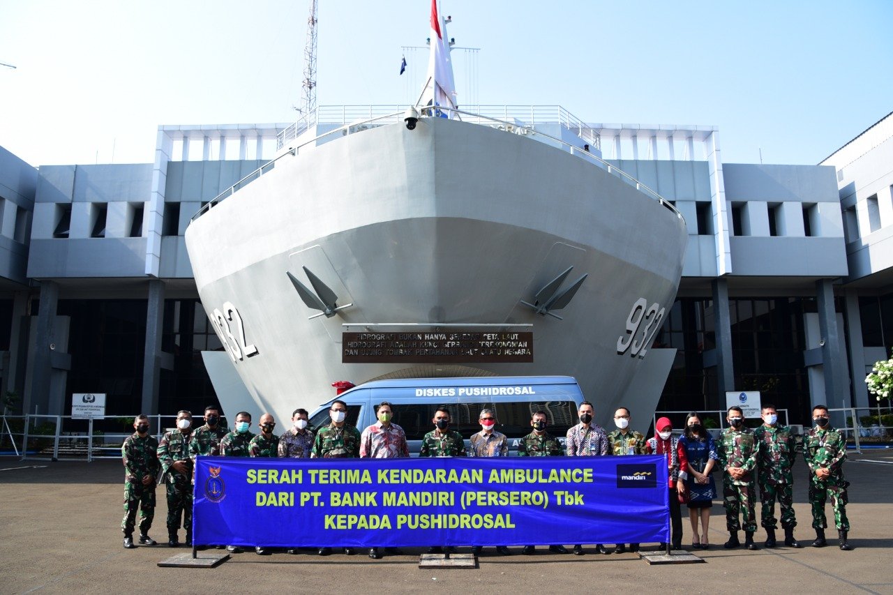 PT. Bank Mandiri (Persero) Tbk menyerahkan bantuan berupa 1 unit Kendaraan Ambulance kepada Pusat Hidro-Oseanografi TNI Angkatan Laut (Pushidrosal) di Markas Komando Pushidrosal, Jalan Pantai Kuta V/1, Ancol Timur, Jakarta Utara. Rabu (1/9/2021).