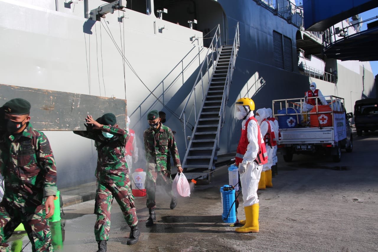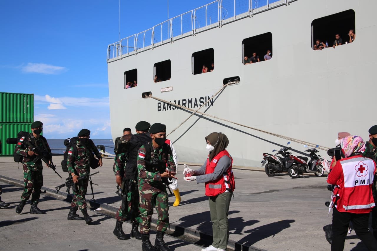 KRI Banjarmasin 592 setelah sandar langsung debarkasi para prajurit tersebut, dengan melalui prosedur protokol kesehatan yang sudah disiapkan oleh pihak Komite Keamanan Pelabuhan (KKP) Kota Gorontalo.