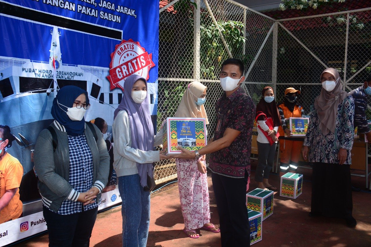Dalam rangka memperingati HUT ke-76 TNI Angkatan Laut, Pusat Hidro-oseanografi TNI AL (Pushidrosal) menggelar Bakti Sosial berupa Serbuan Vaksinasi Covid-19 dan Penyerahan Sembako bagi masyarakat Pademangan, Jakarta Utara, Kamis (9/09/2021).