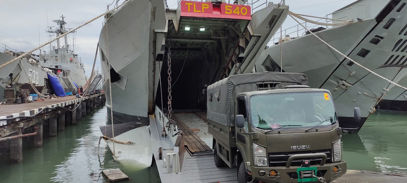 Satya Wira Jala Dharma. Kapal perang jenis Frosch I/Type 108, KRI Teluk Lampung-540 mendukung operasi angkutan laut militer Pasukan Marinir 2 Surabaya yang akan melaksanakan Latihan Satuan Lanjutan (LSL) II triwulan III tahun 2021.