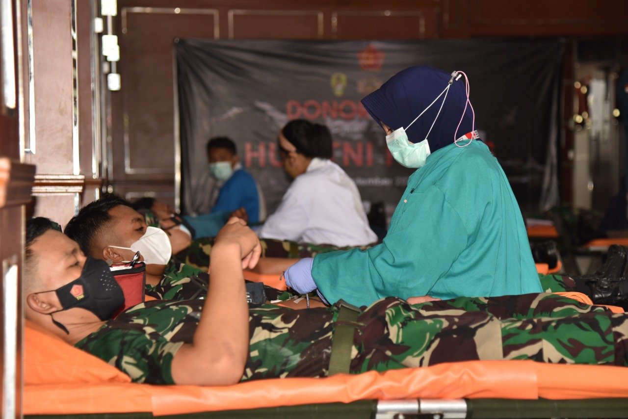 Satya Wira Jala Dharma. Komando Lintas Laut Militer (Kolinlamil) menggelar kegiatan bakti sosial donor darah dalam rangka memperingati HUT ke-76 TNI yang berlangsung di Mako Kolinlamil, Tanjung Priok, Jakarta Utara, Rabu (15/9/2021).