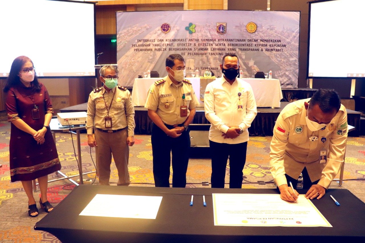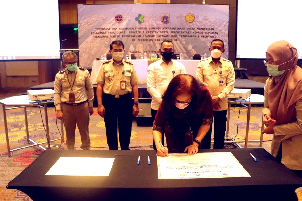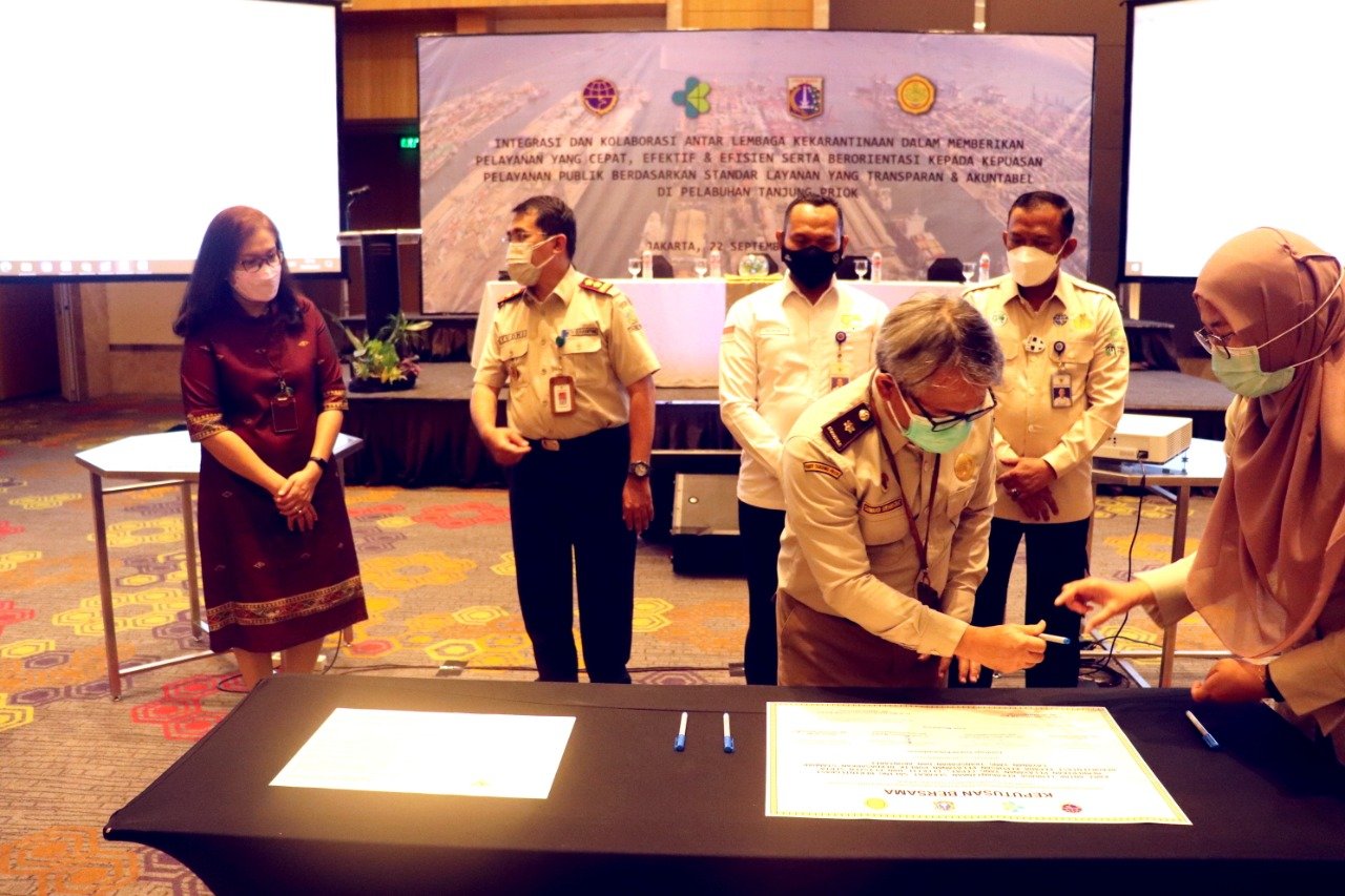 Sosialisasi ini, dilaksanakan dalam bentuk Penandatangan Keputusan Bersama Antar Lembaga Terkait Kekarantinaan di Pelabuhan Tanjung Priok diantaranya Kantor Kesyahbandaran Utama Tanjung Priok, Kantor Otoritas Pelabuhan Utama Tanjung Priok, Kantor Kesehatan Pelabuhan Kelas I Tanjung Priok dan Balai Besar Karantina Pertanian Tanjung Priok.