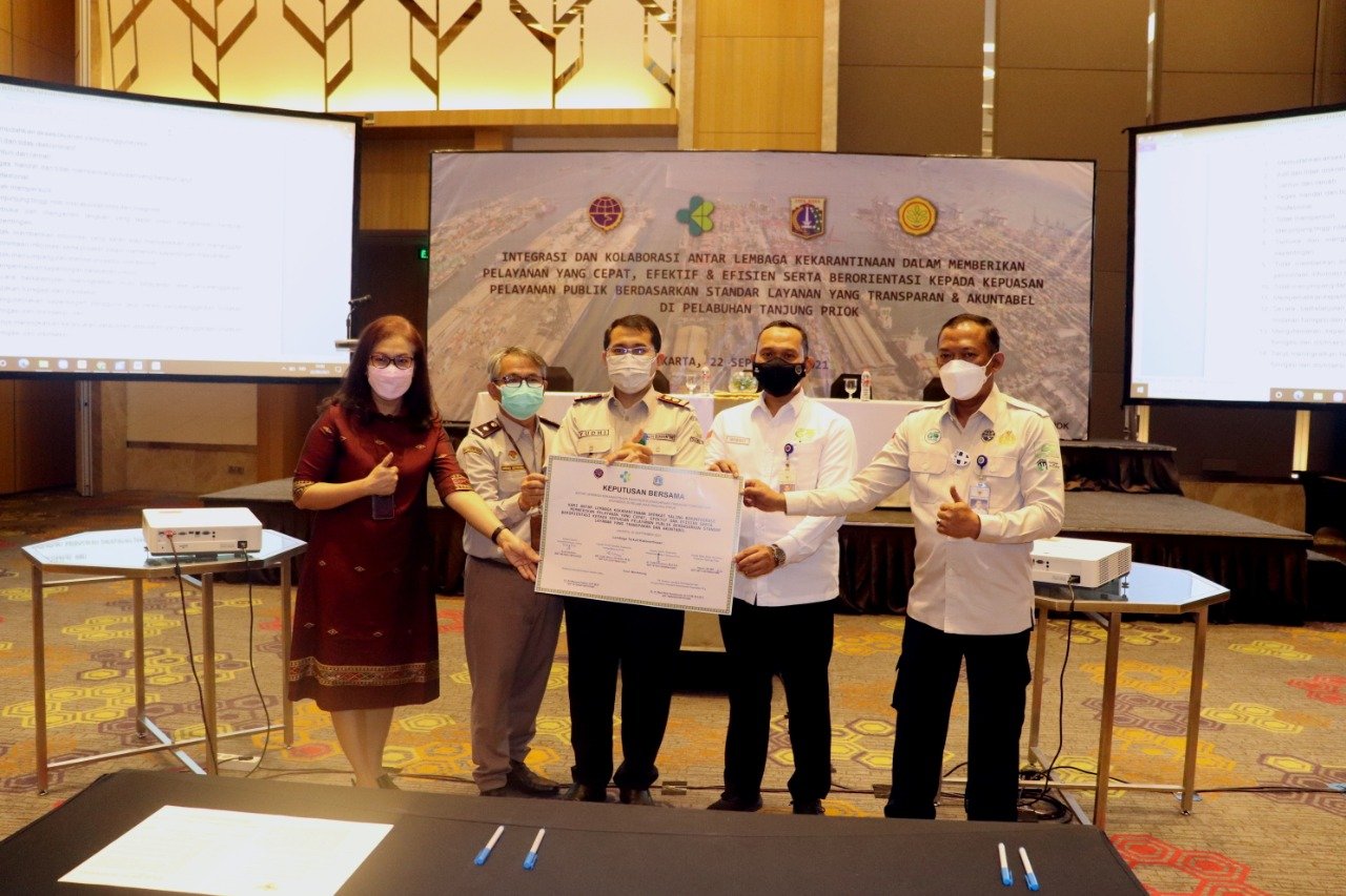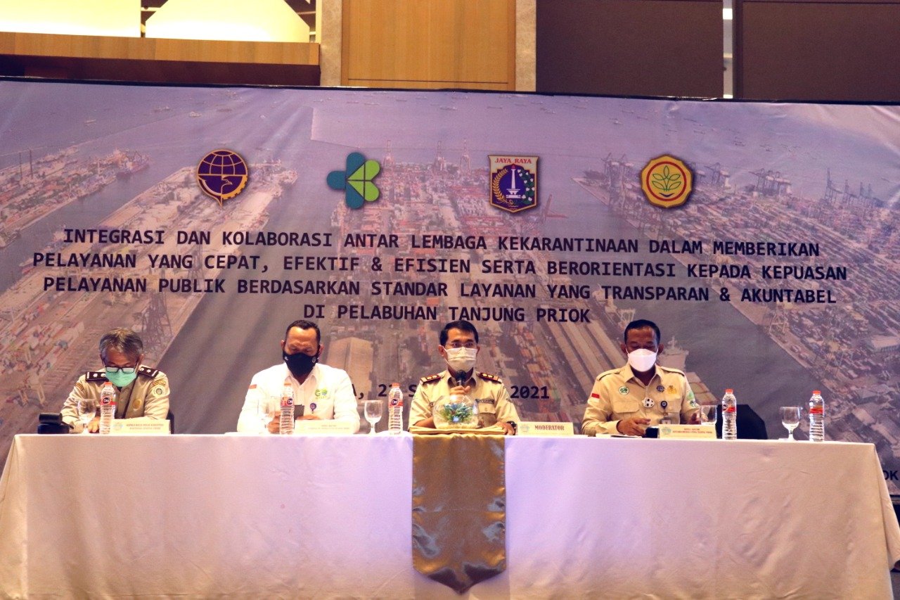 KKP Kelas I Tanjung Priok menyelenggarakan Sosialisasi Keputusan Bersama tentang Percepatan Integrasi Antar Lembaga Kekarantinaan pada penyelenggaraan tindakan Fumigasi Dan Disinseksi khususnya di Pelabuhan Tanjung Priok yang dilaksanakan di Hotel Holiday Inn Kemayoran Jakarta Pusat, Rabu (22/9/2021) kemarin.