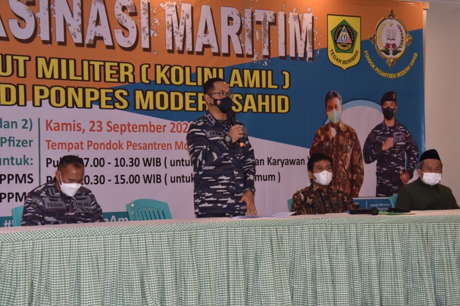 “Sebelumnya serbuan vaksin maritim TNI AL fokus menyasar masyarakat pesisir, kawasan pelabuhan dan perkampungan para nelayan yang sudah terpenuhi, kini berikutnya sesuai instruksi Bapak Kasal di sekolah dan pesantren seperti yang kita lihat sekarang ini,” ujar Pangkolinlamil.